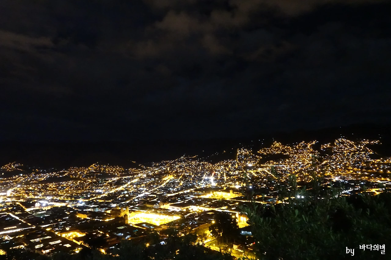 끝까지 올라가서 내려다보는 쿠스코의 야경은 정말 예뻤다. 작은 도시라고 생각했는데 주변에 꽤 넓게 불빛들이 퍼져있었다. 한눈에 보기에도 가장 환하고 짙게 빛이 나는 부분은 쿠스코의 중심, 아르마스 광장이다. 노란 불빛들을 보니 리마에 처음 내렸을 때가 생각나기도 했다.