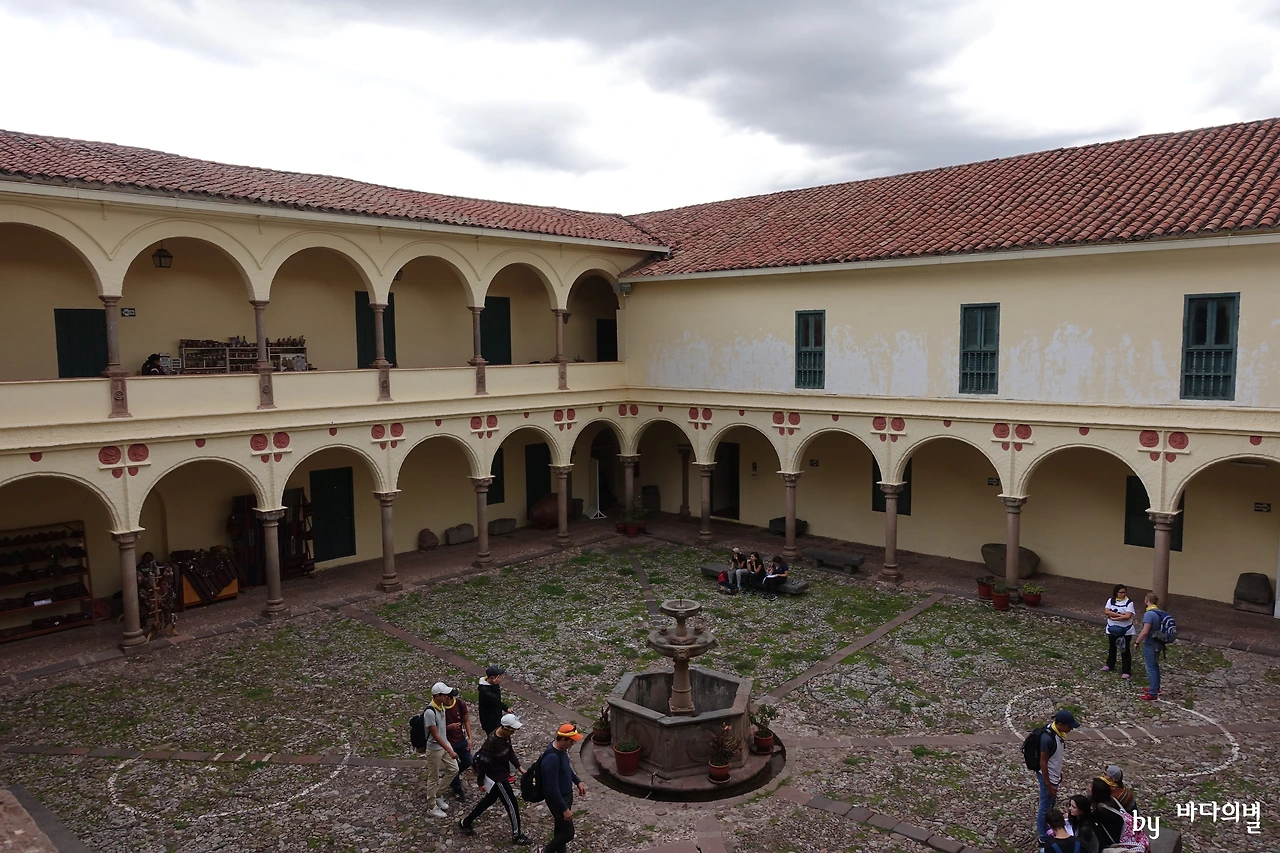코리칸차, 혹은 꼬리깐차라고 불리는 곳은 태양의 신전인데, 코리칸차란 케추아 말(잉카 시대)로 '황금사원'이라는 뜻이다. 하지만 안타깝게도 지금은 황금을 더 이상 볼 수 없다. 스페인이 침략한 이후 황금을 전부 약탈해갔기 때문이다. 그저 스페인인들이 '황금빛으로 빛났다'라고 남긴 기록을 보고 추측해볼 수 있을 뿐이다. 그들은 황금을 약탈하고 이곳을 산토도밍고 성당으로 바꾸어놓았다. 그 이후 쿠스코에는 큰 지진이 두 번 정도 났었는데, 스페인인들이 지은 건물들은 다 무너졌지만 코리칸차 하단부 석벽(사진 속 거무스름한 부분)은 굳건하게 남아 있었다고 한다. 잉카 시대 석조 기술이 얼마나 뛰어났는지를 알 수 있다.