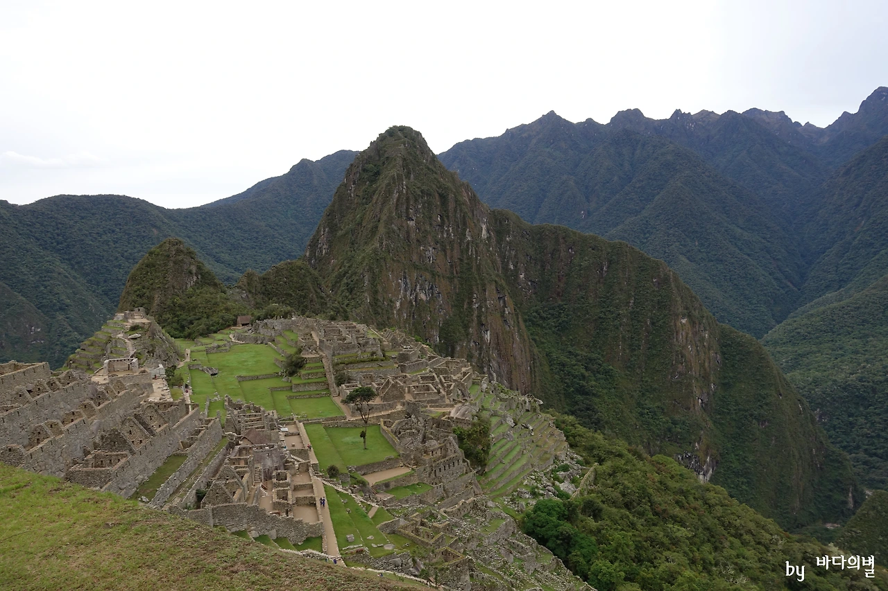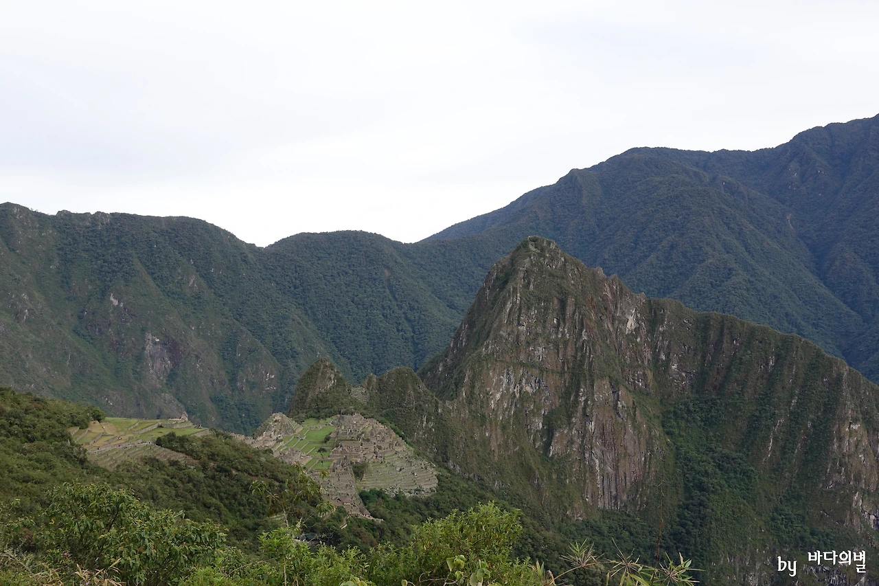 마추픽추와 와이나 픽추의 전경뿐 아니라, 삐죽삐죽한 안데스 산맥의 모습 또한 멋졌다. 안개가 끼었거나 비가 왔다면 보지 못했을 풍경이다. 그렇게 생각하니 이 드문 날씨가 무척 감사했다. 바람을 충분히 맞은 뒤, 등지고 올라왔던 풍경을 바라보며 다시 마추픽추 시티로 내려갔다.