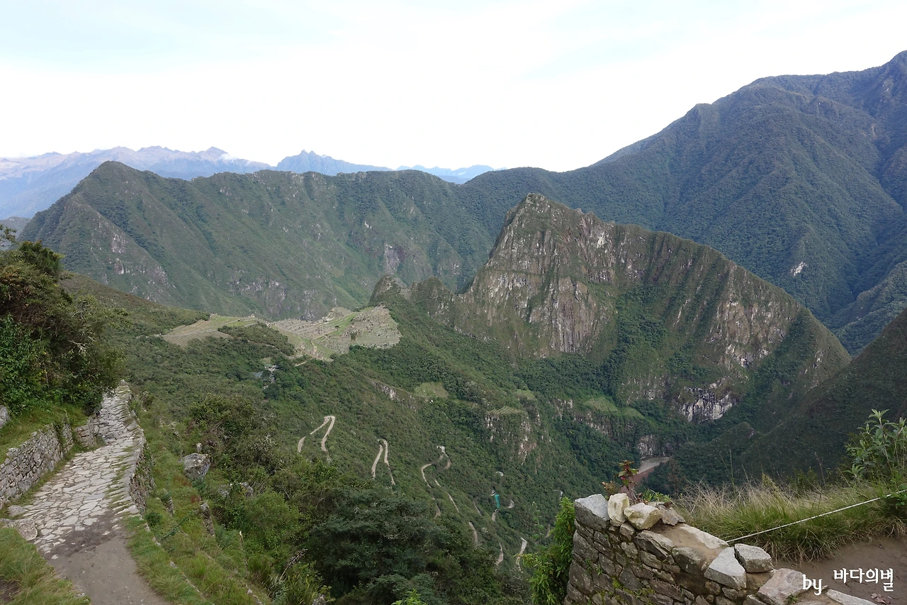 그들은 왜 이곳까지 올라왔으며, 이 많은 돌들은 어디서 구해서 어떻게 쌓아 올린 것일까. 뒤로 함께 보이는 와이나 픽추와 그 뒤로 쭉 이어진 안데스 산맥, 그리고 맑은 날씨를 아쉬워하는 마음을 읽었는지 내려갈 때가 되어서야 살짝 드리워진 구름이 신비로운 감동을 더해주었다.