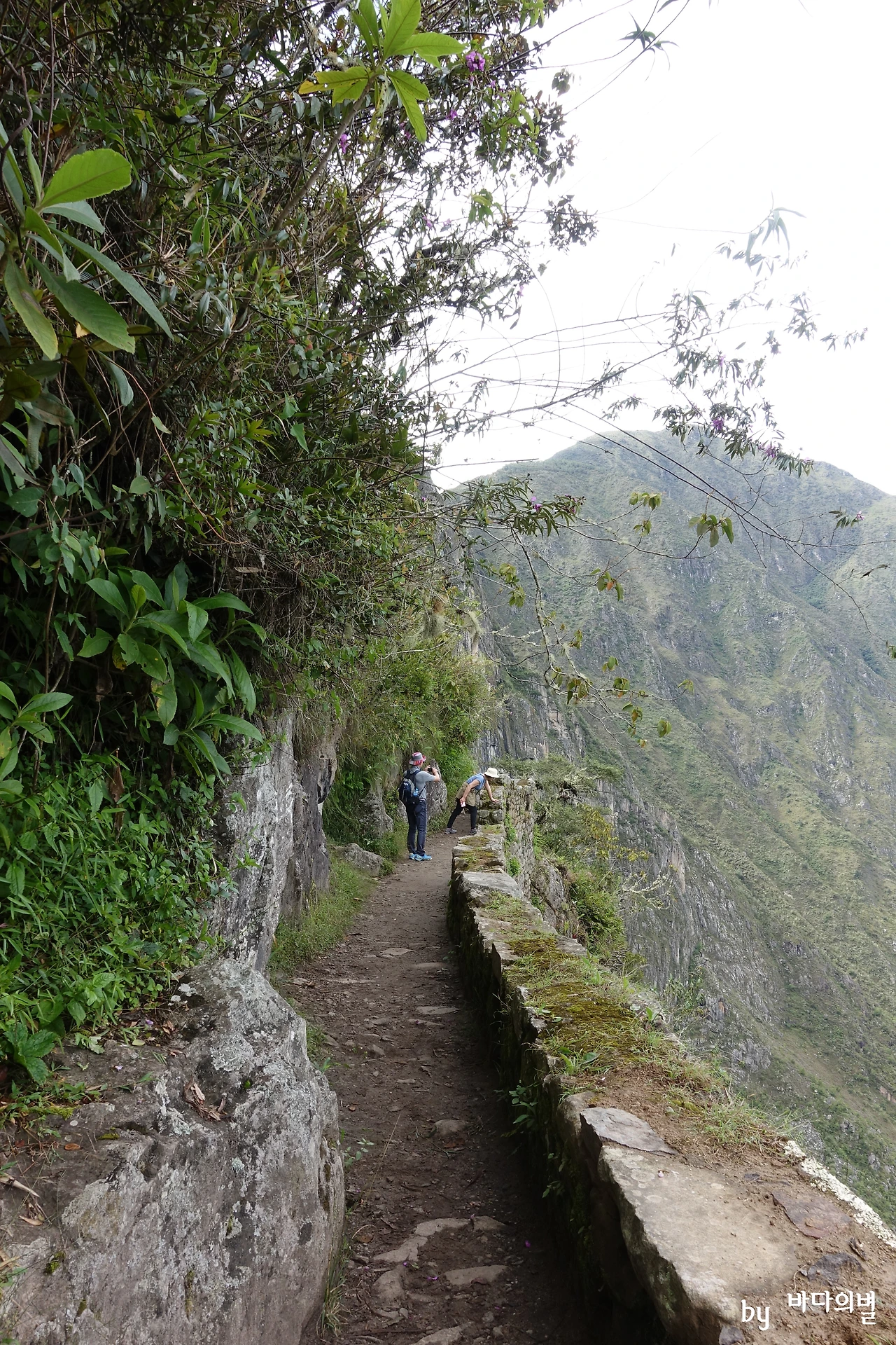 라마가 놀라지 않게 살금살금 사진 찍은 뒤, 다시 잉카 브릿지로 향했다. 가는 길의 난간이 굉장히 낮고 밑으로는 거의 절벽에 가까웠기 때문에 조금 겁이 났다. 나 같은 새가슴은 와이나 픽추에는 절대 가지 못할 것 같다. 네발로 기어오르고 네발로 기어 내려와야 하는 곳이라고 하니.