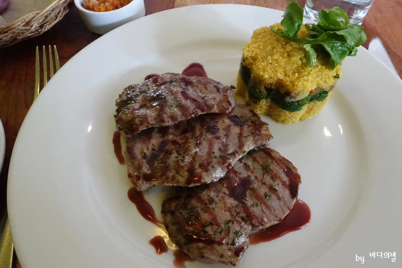 내가 페루에서 먹고 싶었던 음식들이 몇 가지 있었는데, 그중 마지막 날까지 먹지 못했던 음식들이 바로 꾸이(기니피그)와 알파카였다. 엄마는 그게 마음에 걸렸는지 자꾸 먹고 들어오라고 하셨다. 엄마가 병원에 있는데 음식이 편히 넘어갈 리가 만무하지만, 알파카라도 먹지 않으면 엄마 마음이 편해지지 않을 것 같아서 아르마스 광장 근처 식당으로 들어갔다. 생각보다 고급 식당이었는지라 페루 화폐를 공항 갈 택시비만 남겨놓고 깔끔하게 다 쓸 수 있었다. 알파카는 특유의 냄새가 있었지만 부드러워서 맛있었고, 함께 나온 안데스식 야채 타르트 또한 상큼하고 맛있었다. 고기는 양이 너무 많아서 아깝지만 남길 수밖에 없었다.