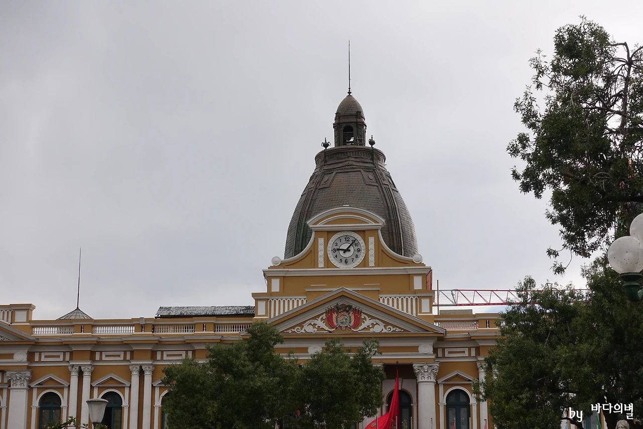 전날부터 궁금했던 국회의사당의 시계에 대해 가이드에게 물어보았다. 가이드는 저 시계가 볼리비아의 자주성을 나타낸 것이라고 했다. 북반구와 남반구는 모든 것이 반대로 움직이는데, 이 세상은 모두 북반구 중심으로 돌아간다. 그러니 볼리비아에서는 남반구의 방식, 즉 자신들만의 방식을 고수하겠다는 의지를 나타낸 것이라고 했다.