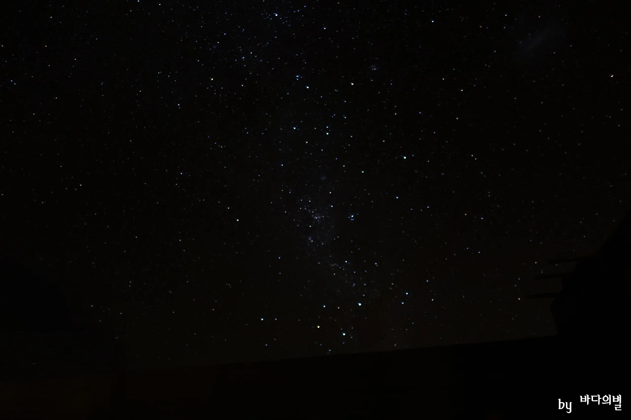 숙소 문에서 한 발짝 한 발짝 더 나아갈수록 별이 수십 개씩 더 보였다. 계속해서 감탄사가 나왔다. 그냥 들어가서 잤으면 얼마나 후회했을까. 하루 종일 몸도 피곤하고 특별한 감흥도 없어 지쳤는데, 밤에 은하수를 보고는 피곤이 다 날아가는 기분이었다. 오늘은 웬일인지 달이 모습을 보이지 않았다. 어제 우리한테서 원망을 너무 많이 들어 안 나왔나 보다.