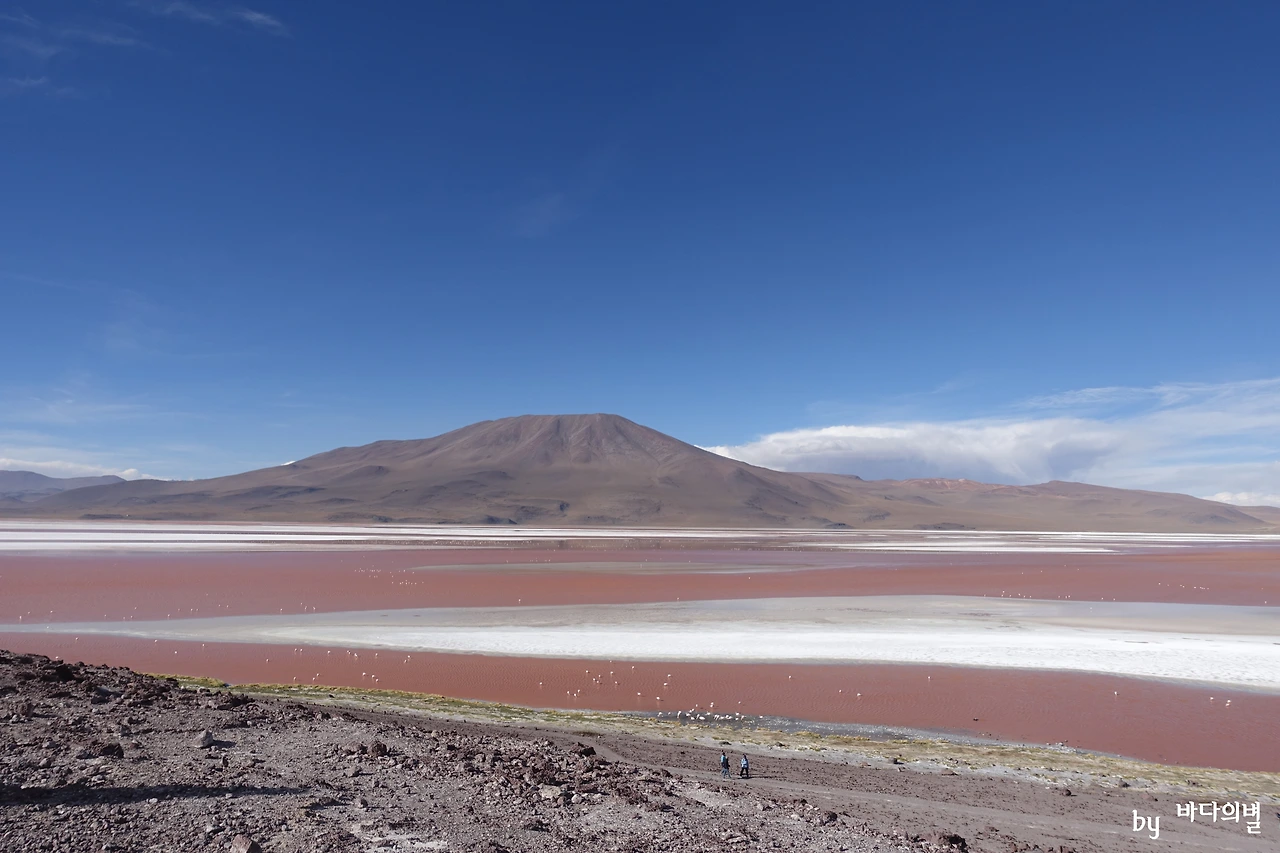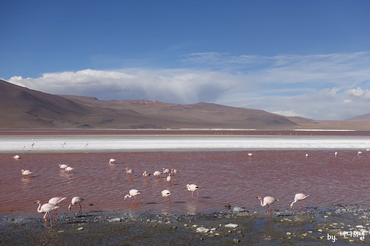 모든 일정이 끝나고, 숙소로 향했다. 숙소 앞에는 오늘의 마지막 호수, 라구나 콜로라다(Laguna Colorada)가 있었다. 콜로라다는 스페인어로 붉은색이라는 뜻이다. 이날 본 대부분의 호수들에 홍학이 있었지만, 붉은색의 호수에 붉은 홍학들이 있으니 더더욱 예뻤다.