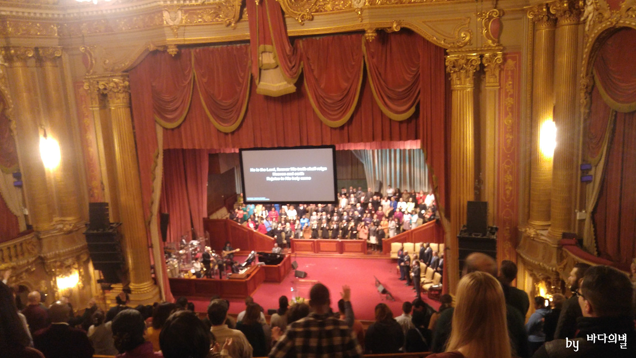 교회는 마치 공연장을 방불케 했다. 들어가니 '직원'들이 몇 시까지 있을 건지를 물어보았다. 질문을 제대로 이해하지 못해 되물었다. 예배는 10시부터 12시까지 인데 끝까지 앉아있을 건지, 아니면 그전에 11시에 일어날 건지를 묻는 것이었다. 사실 예배를 다 볼 생각은 없었기에 1시간만 있겠다고 했다. 그랬더니 위층으로 올려 보냈다. 끝까지 앉아 예배를 볼 사람들에게만 아래층 자리를 내주나 보다. 위층에 올라가니 '어셔'들이 서로 사인을 주고받으며 자리에 앉혀주었다.