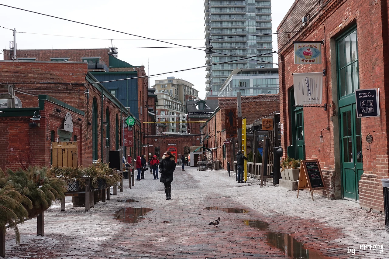세인트 로렌스 마켓에서 조금 걸어가면 오래전 증류주 공장이었던 곳을 탈바꿈시킨 디스틸러리 디스트릭트가 나온다. 지금은 예쁜 카페와 갤러리 등이 자리하고 있는 골목이 되었다.