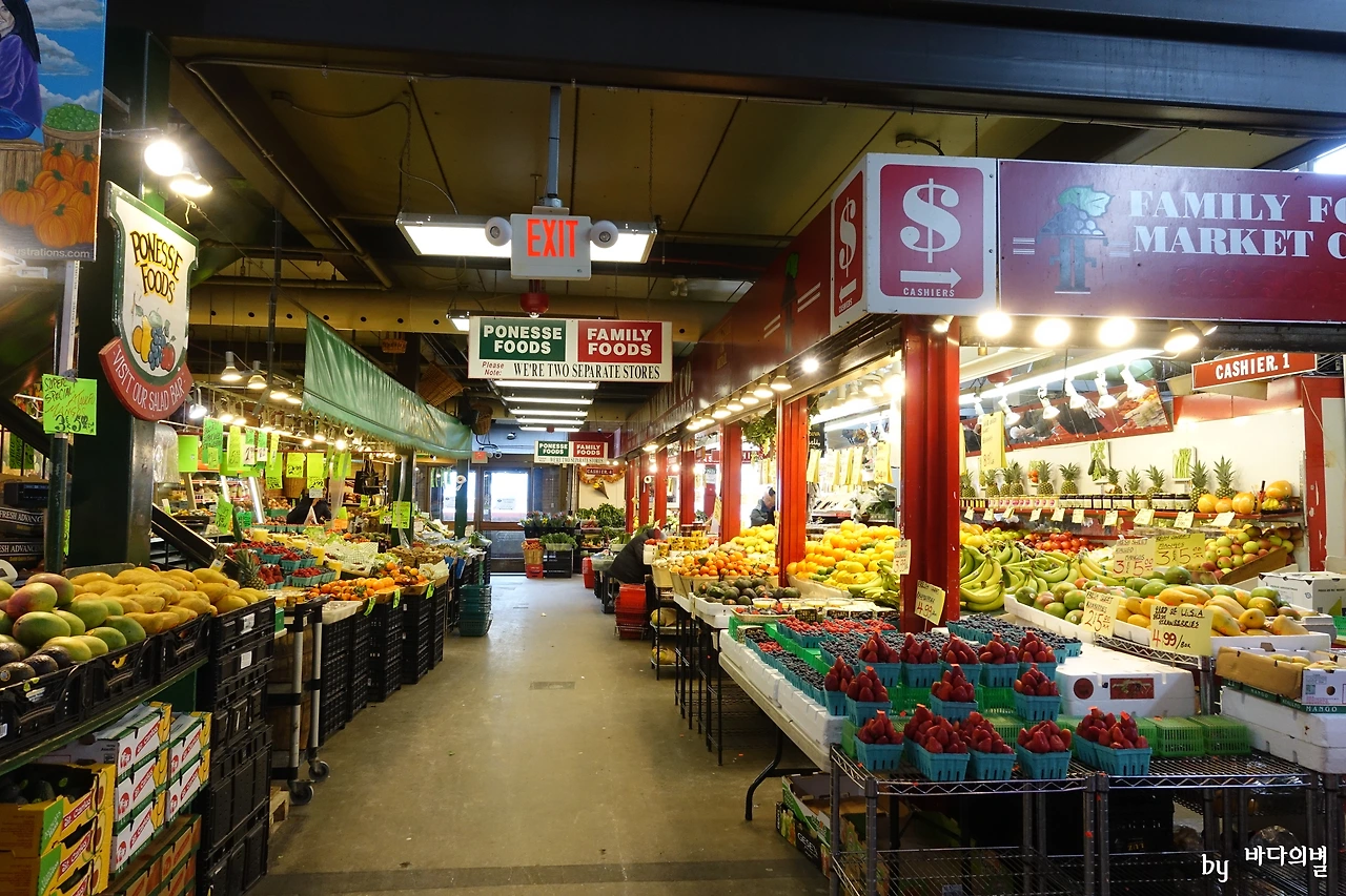 어쨌든, 첫날 푹 쉬었으니 둘째 날 힘차게 출발했다. 뉴욕에 머무는 동안 첼시 마켓에 가보지 않은 것이 조금 아쉬워서, 이번에는 마켓에 가장 먼저 가보았다. 세인트 로렌스 마켓은 실내에 있는 대형 시장인데 규모가 크고 식료품 등 파는 것도 많았지만 무엇보다 마켓 자체가 깔끔하고 예쁘게 꾸며져 있었다.