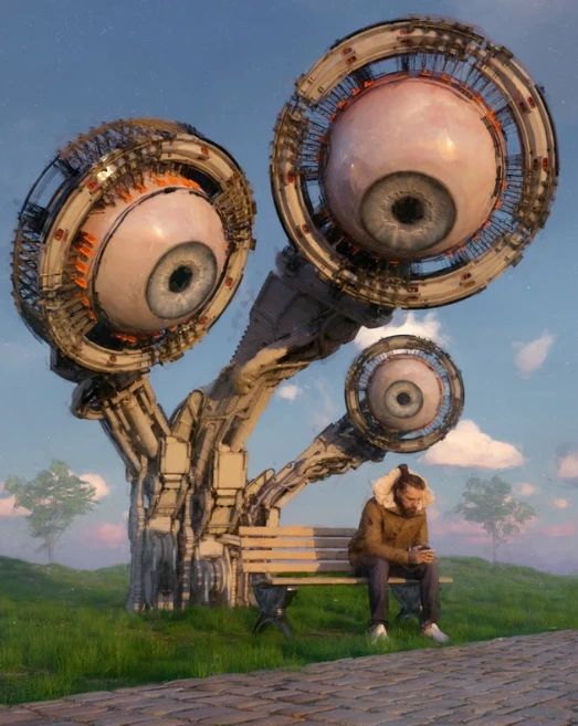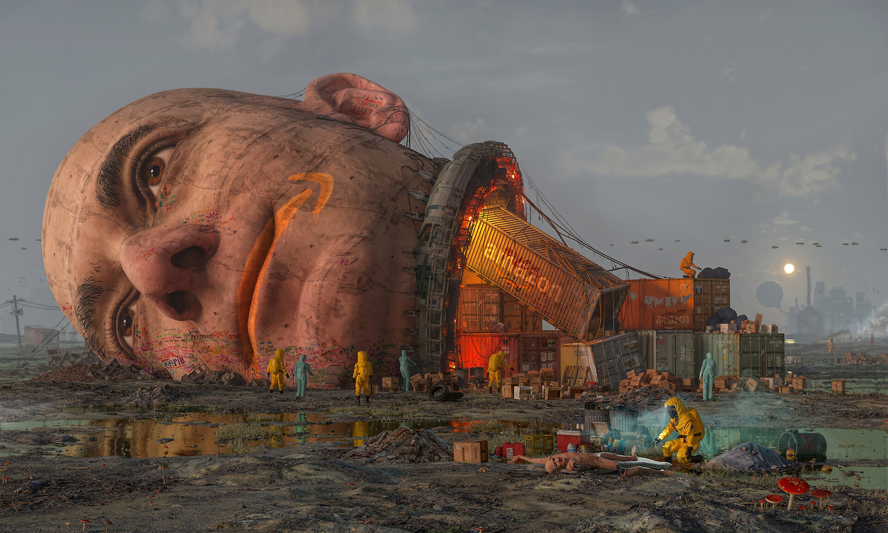 Chatgpt는 어떤가요? 새로운 차원의 인공지능 서비스로 널리 사용되고 있지만 데이터를 축적해 점점 고도화한다는 점에서 은연중 스며드는 불안함을 지울 수 없습니다. 인공지능이 인간의 통제권을 벗어나 인간을 감시하고 명령을 내리거나 공격한다면? 실제로 미국 공군의 가상훈련에서 AI드론이 인간을 공격한 사건이 보도되기도 했죠. 게다가 사람보다 뛰어난 수행능력을 보이는 로봇이 이미 개발된 만큼 인공지능 전투로봇이 전쟁에 사용될 날도 머지않아 보입니다. 개발을 안 할 수도 없고 그렇다고 이대로 계속할 수도 없고. 테슬라 CEO 일론 머스크가 AI가 인류를 멸종시킬 수 있다고 경고하면서도 한편으로 '엑스에이아이(xAI)'라는 새 인공지능 회사를 설립하며 본격적인 개발에 뛰어든 아이러니는 이런 양가적 감정을 그대로 반영합니다. 비플도 마찬가지일 겁니다.비플은 이런 두려움을 정보 권력을 조롱하고 희화화함으로써 달래기도 합니다. 아마존 창업자 제프 베이조스(작품 You Got Mail)나 메타 창업자 마크 저커버그(작품 Zuck)의 머리가 떨어져 나간 작품들, 그리고 다소 혐오스러운 묘사 때문에 올리진 않았지만 거대 테크 기업의 수장들을 괴물같은 모습으로 표현한 작품들이 상당수 있습니다.
