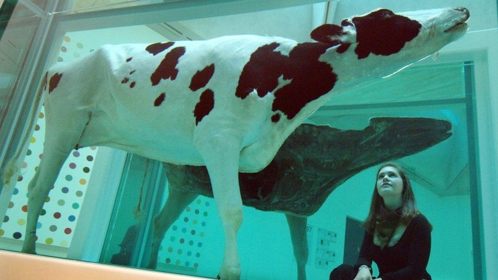 NFT아트를 보기 전에 데미안이 어떤 예술가인지 대략 알아볼게요. 우선 논란이 많습니다. 작품의 주제가 대체로 ‘죽음’인데 ‘실제 죽음’을 전시해 사람들에게 시각적인 충격을 주죠. 죽은 상어를 포름알데히드에 넣어 생생한 상어의 생전 모습을 보여주거나 소를 절반으로 갈라 시체 내부를 공개하는 방식입니다. 실제 사람의 두개골을 다이아몬드로 장식해 팔기도 했습니다. 죽음이라는 소재는 예술에서 아주 흔하지만 영혼이 떠난 사체를 실제로 이렇게 적나라하게 전시하는 경우는 드뭅니다. 너무나 자극적인 소재와 방법 때문에 그의 전시를 좋아하지 않는 사람들도 많죠.