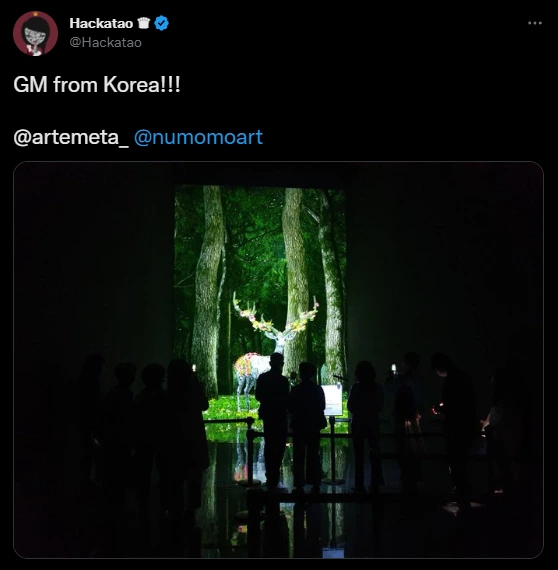 2022년 4월 30일부터 7월 20일까지 우리나라 강릉에 위치한 아르떼뮤지엄에서는 <[SPIRIT FOREST] INCANTO>라는 제목으로 해커타오의 작품들이 전시되었습니다.