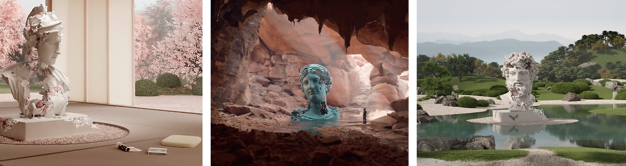 벚꽃이 흐드러진 숲이 보이는 고즈넉한 방, 천사가 내려올 듯 힘찬 햇살이 사선으로 뚫고 들어오는 동굴, 개구리가 우는 숲으로 둘러싸인 아담한 연못.. 처음부터 '공간'을 주제로 한 작품이 아니었을까 싶을 정도로 빼어난 경관을 자랑하는데요. 작품에서 첫 눈에 띄는 주인공은 조각상이겠지만 여러차례 감상을 하다보면 점점 배경이 눈에 들어 옵니다. 평범해 보이는 자연의 배경은 커다란 조각상과 콜라보를 이루며 독특한 분위기를 자아내고 세련되기까지 합니다. 특히 Bust of Rome에 표현된 세세한 공간 연출을 관찰해 보면 그가 얼마나 건축과 공간에 애정이 많고 관심을 쏟는지 알 수 있습니다.