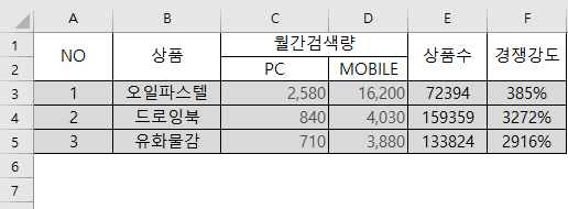 중요한 건 여기서 그나마 경쟁이 낮은 제품을 찾는 일!