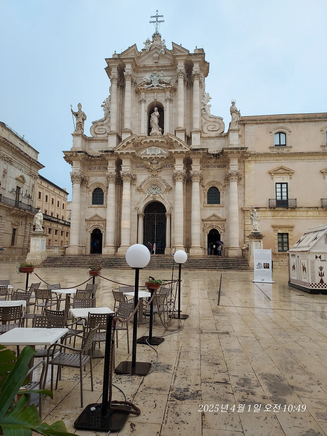 시라쿠사 도시의 수호성인이 세인트 루치아다. 우리가 노래 부르는 그 산타 루치아 말이다. 그래서인지 시라쿠사에는 루치아라고 이름 붙은 교회가 한두 개가 아니다. 시라쿠사 대성당에도 파사드 왼쪽에 크게 세인트 루치아라고 적혀있다. 대성당 안에 루치아를 위한 예배당이 있다는 뜻으로 해석된다. 시라쿠사 대성당을 지탱하는 기둥 중 일부는 로마시대의 것도 그대로 남아있어서 이 도시의 역사와 위용을 알 수 있다.