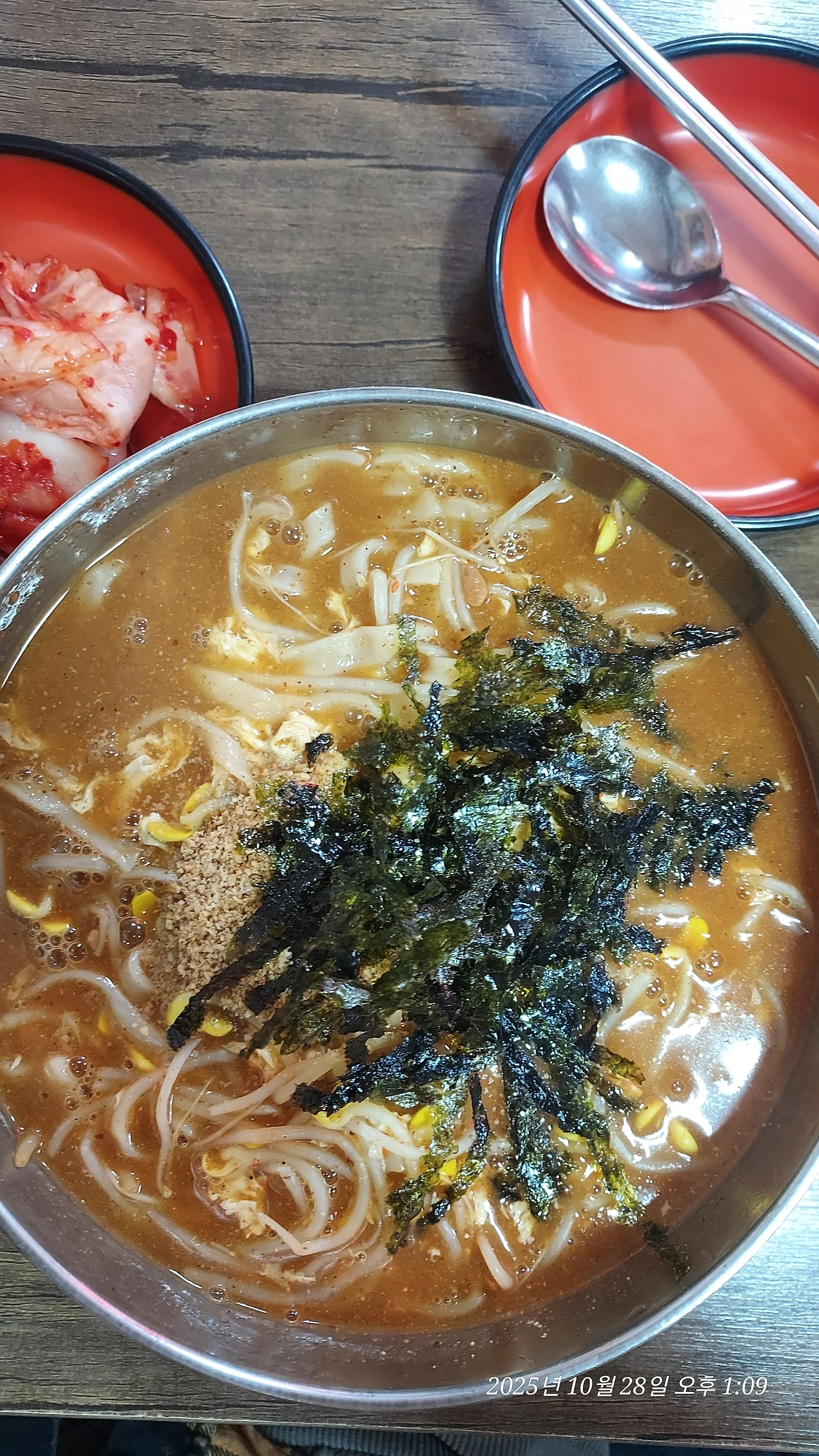 이 집 장칼국수는 된장과 멸치가루, 콩나물이 들어간 게 특이하다. 양도 푸짐하여 배불리 먹을 수 있다.