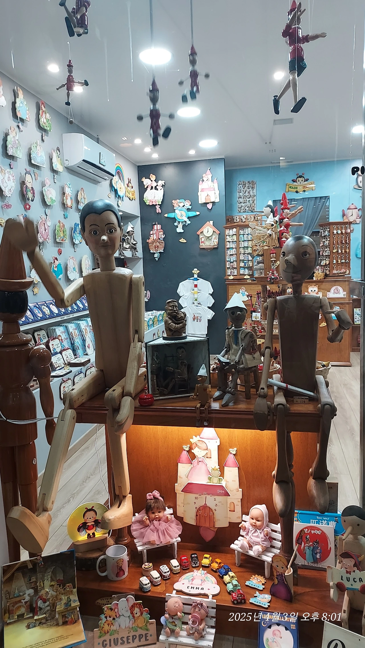 피노키오 인형가게 주인은 관광객들이 가게 안을 들여다볼 때마다 인형의 손을 움직여 인사를 한다. 관광객들이 손을 들어 인사하면 피노키오 인형도 똑같이 따라 한다. 그걸 계속하며 즐거워하다가, 연신 웃고 계신 가게 주인과 눈이 마주치는 순간 그가 인형을 조정한다는 사실을 알아채고 주인아저씨와 함께 웃음 짓는다. 귀여운 호객행위 아닌가. 우리 일행도 결국 가게로 들어가 용수철이 달린 피노키오 나무 인형을 산다. 저녁 마실 나와서 다시 손인사를 하니 집무에 바쁘신 아저씨, 한참 만에 창밖의 우리를 발견하시고, 인형의 손을 번쩍 들어 인사해 주신다. 타오르미나에서의 즐거운 추억 하나가 보태진다.