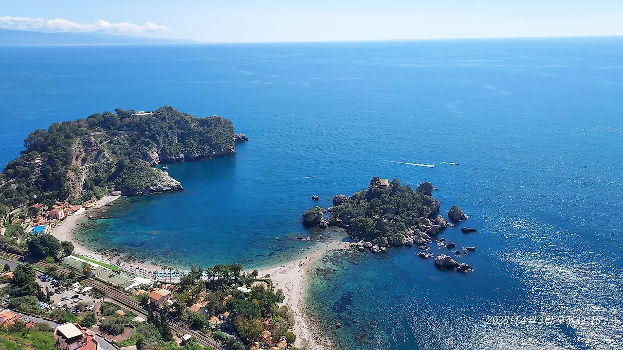우리는 삼일 간의 시라쿠사 여행을 마치고 다시 카타니아를 거처 타오르미나로 향하는 버스에 짐을 싣는다. 두 시간 남짓 시칠리아 북동쪽으로 이동하는 동안 바깥 풍경은 여독을 잊게 하고 다시 마음을 편안하게 안정시킨다. 지중해를 끼고도는 해안선을 따라 파란 바다는 보석처럼 반짝인다. 옆자리에 앉은 이곳 주민인듯한 여인은 물어보지도 않았는데 저기가 이솔라벨라라며 엄지 척을 해 보인다.