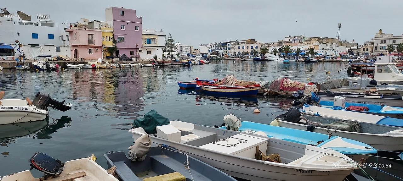 이틀 묵을 비제르티에 일찍 도착하여 예약한 숙소를 찾아간다. 루아지버스 종점에서부터 바닷가를 지나 한참을 들어와서야 우리의 숙소가 있었다. 택시기사는 계속 피니쉬를 외치며 그만 가기를 요구한다. 결국 구글앱이 가리키는 목적지를 400m 남겨두고 택시에서 내린다. 계속 시계를 가리키는 택시기사를 이해할 수 없었고, 택시비를 더 받으면 될 텐데 가다 말고 끝내자는 택시기사는 또 처음이라 우리도 호기롭게 오케이 피니쉬를 외치며 짐을 내렸지만 금방 후회를 한다. 길이 엉망이라 배낭 하나씩 메고 20kg이 넘는 케리어를 끌고 가는 게 쉽지가 않았다. 아파트라고는 하는데 난생처음 와보는 어느 도시에서 이틀밤 묵을 집을 찾는 건 그렇게 간단하지 않았다. 여행의 고수인 동행인도 도시를 이동하고, 새로운 숙소에 입성하는 게 가장 신경이 쓰인다고 말한다. 힘겹게 찾아든 숙소는 아직 청소 중이고 한 시간쯤 후에 연락을 준다며 우리의 짐만 들인다. 우리는 점심식사도 하고 차 한잔 하면서 새로운 도시를 탐색해 보자며 도심 쪽으로 되돌아 들어간다. 식당으로 보이는 곳이 여러 군데 있었으나 문이 닫혀있고, 카페도 자주 눈에 띄었지만 영업을 하는 곳은 없고 물청소를 하는 곳이 몇 곳 보인다. 200m 정도에 가게가 있다고 알려주는 점잖게 생기신 분의 지시대로 곧장 갔다가 우회전을 해보지만 식당 문은 닫혀있다. 무슨 일일까? 토요일이라 그런가? 바닷가 도시 비제르티에 오면 뽈보랑 생선요리를 제대로 먹어보겠다는 기대에 부풀어있던 우리는 점점 기운이 빠졌다. 건너편 도로가에 화덕에서 무언가 굽고 있는 식당이 보여 차도를 건너 다가가 본다. 앉을 테이블도 없는 좁은 가게에서 중년의 남자가 토마토와 커다란 고추를 겉이 검게 변하도록 부채질을 하면서 굽고 있다. 그는 먹을 수 없다고 한다. 더 이상은 그의 말을 추측도 하기 어려워 번역기를 아랍어와 한국어로 세팅하여 식당주인의 입 가까이 댄다. 해가 지면 먹을 수 있다. 아하, 라마단!