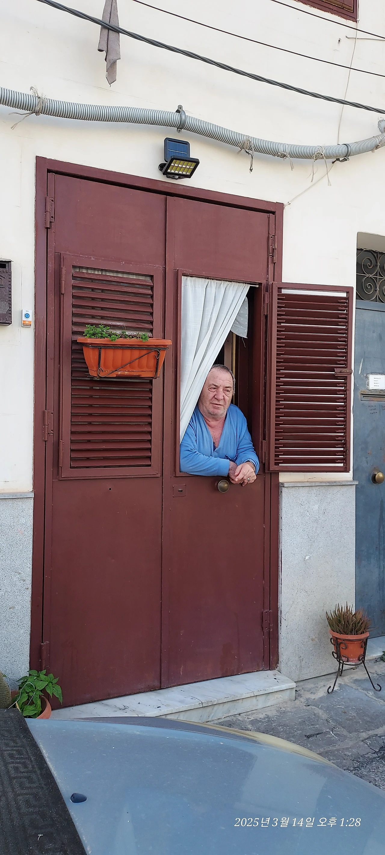 시칠리아 어느 골목길에서도 창밖의 친구와 대화를 나누던 할아버지 역시 기꺼이 사진 촬영을 허락해 주었다. 그들의 창은 길게 반으로 나뉘어, 몸의 상반신을 드러내고 바깥과 소통하다가 내키면 하단의 나머지 반을 열고 밖으로 나올 수 있게 되어있다.