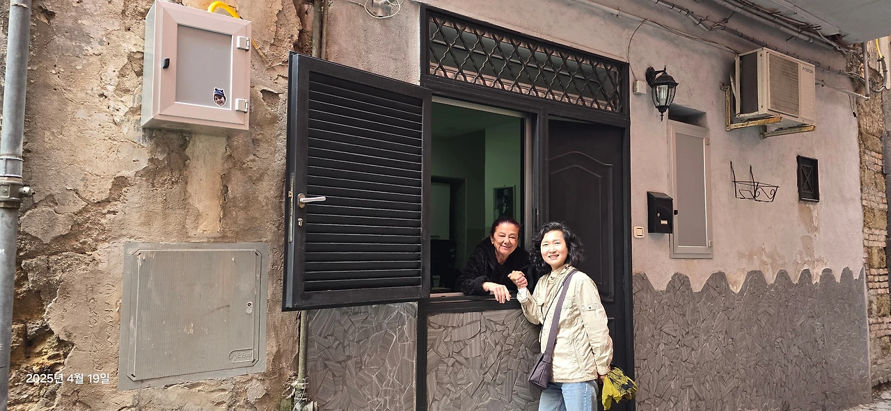 나폴리에서 나흘 머무는 동안 스파카 나폴리 시장 골목을 들락거렸다. 숙소가 거기 있었으니까. 수다를 떨며 귀가하는 길에 불쑥 내밀어진 이웃집 여인과의 조우는 우리에게 추억을 만들어주었다. 놀란 나의 손을 부여잡고 미안함을 표현하던 그녀는 머리를 곱게 단장하고 나서야 우리들과의 기념 촬영에 응했다. 사진 속에서 예쁘게 기억되기를 바라는 마음은 세상 모든 사람들이 똑같나 보다.