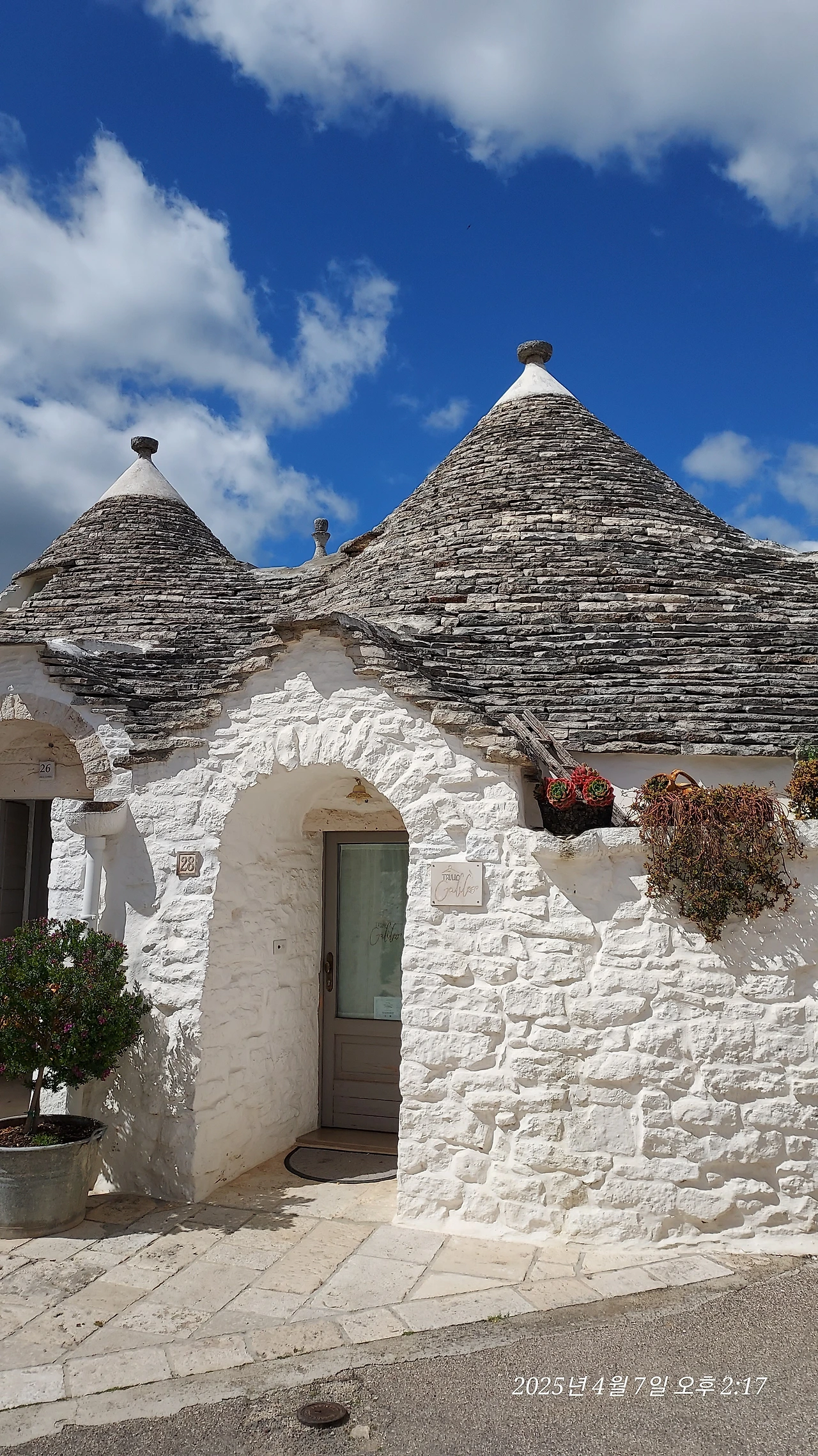 바리에서 다녀온 알베로벨로는 마치 스머프들이 살 것만 같은 고깔 모양의 돌지붕으로 유명한 곳이다. 돌을 쌓는 방식이 건축가마다 달라서 누구의 솜씨인지를 금방 알 수 있다고 하고, 지붕 위에 특별한 표시를 해놓기도 한다. 하얀색 벽에 검은 회색빛 고깔 지붕의 알베로벨로는 무슨 민속촌 느낌이 나고, 많은 학생들이 수학여행을 와 있었다. 몰아치는 바람과 서늘한 날씨에 우리는 돌로 지어진 레스토랑을 찾아 들어가 벽난로를 쬐며 점심식사를 했다.