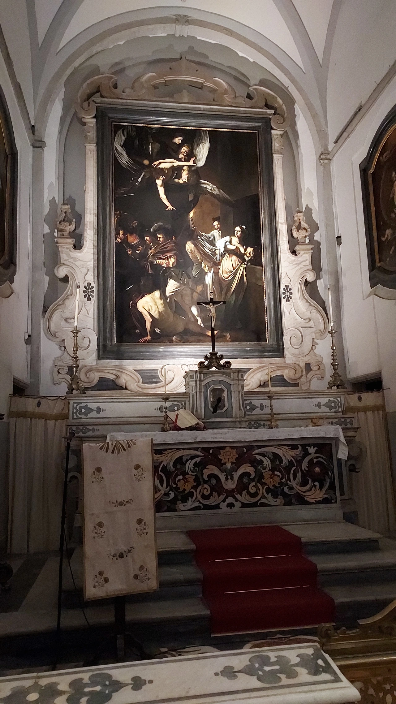 10유로의 입장료를 내고 들어가니, 이곳은 작은 예배당이었다. 미술관으로 사용하면서 작은 음악회나 모임도 갖는 아담한 공간이다. 카라바조의 그림은 다른 그림들과 확연한 차이를 보이기 때문에 금방 알아볼 수 있었다.