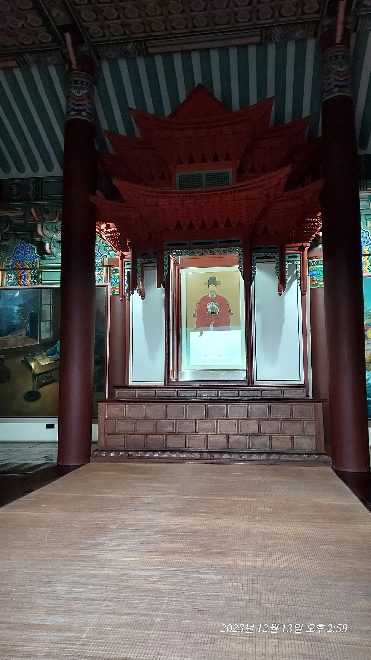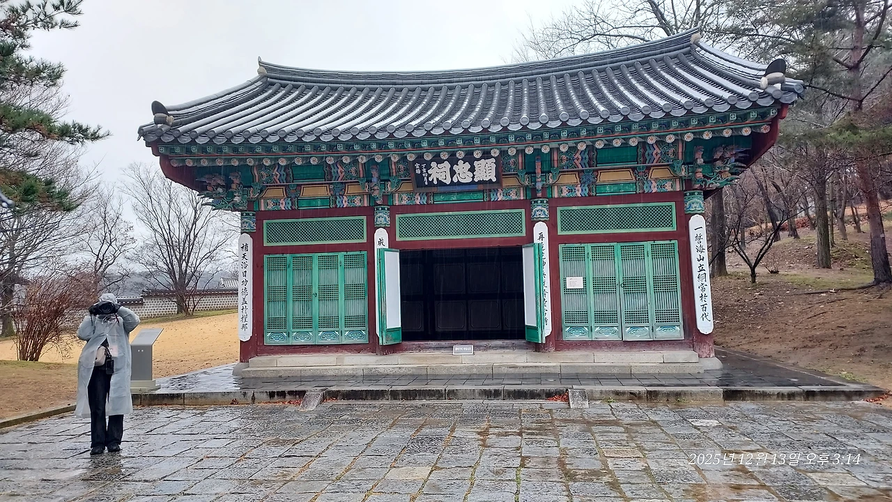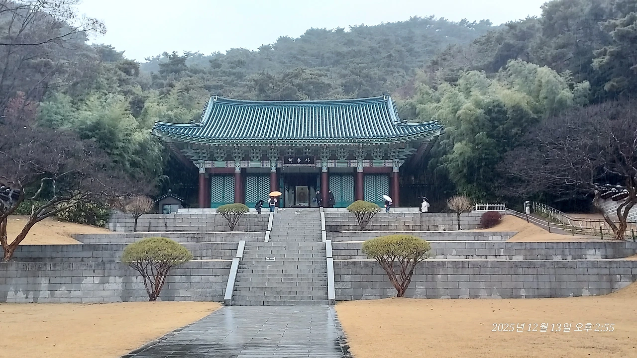 지금의 현충사는 사당에는 잘 쓰지 않는 팔작지붕을 하고 있고, 닫집과 마룻바닥, 문을 빼고는 전부 콘크리트로 지어져서 건축적, 역사적 의미가 많이 퇴색된다. 아산시가 다 내려다보이는 위치만큼은 위용이 넘치지만, 이순신 장군이 바라는 바가 아닐 것 같다. 당당한 풍채에 선한 눈빛과 얼굴을 하고 있는 그의 영정은 남의 집에 있는 듯 잘 어울리지 않는다. 그 넓은 현충원 어딘가에 말을 타고 달리는 동상이라도 하나 있었다면 이런 답답한 마음은 덜했을까?