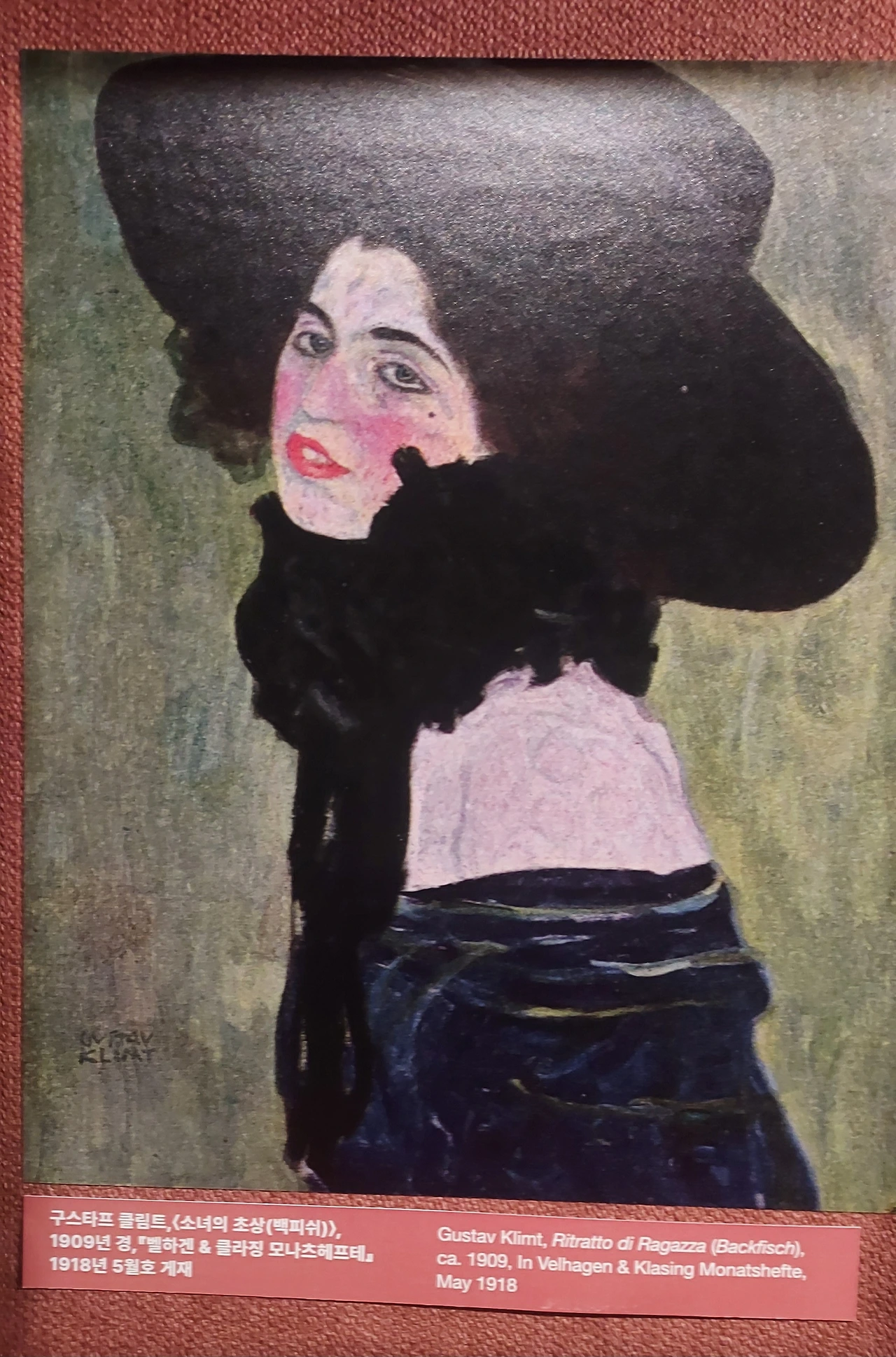 크림트의 <젊은 여인의 초상>은 베니스에서 1910년 처음 전시되었다가 2년 후에 다시 전시된다. 당시 풋내기 소녀를 일컫는 <백피쉬>라는 제목으로.