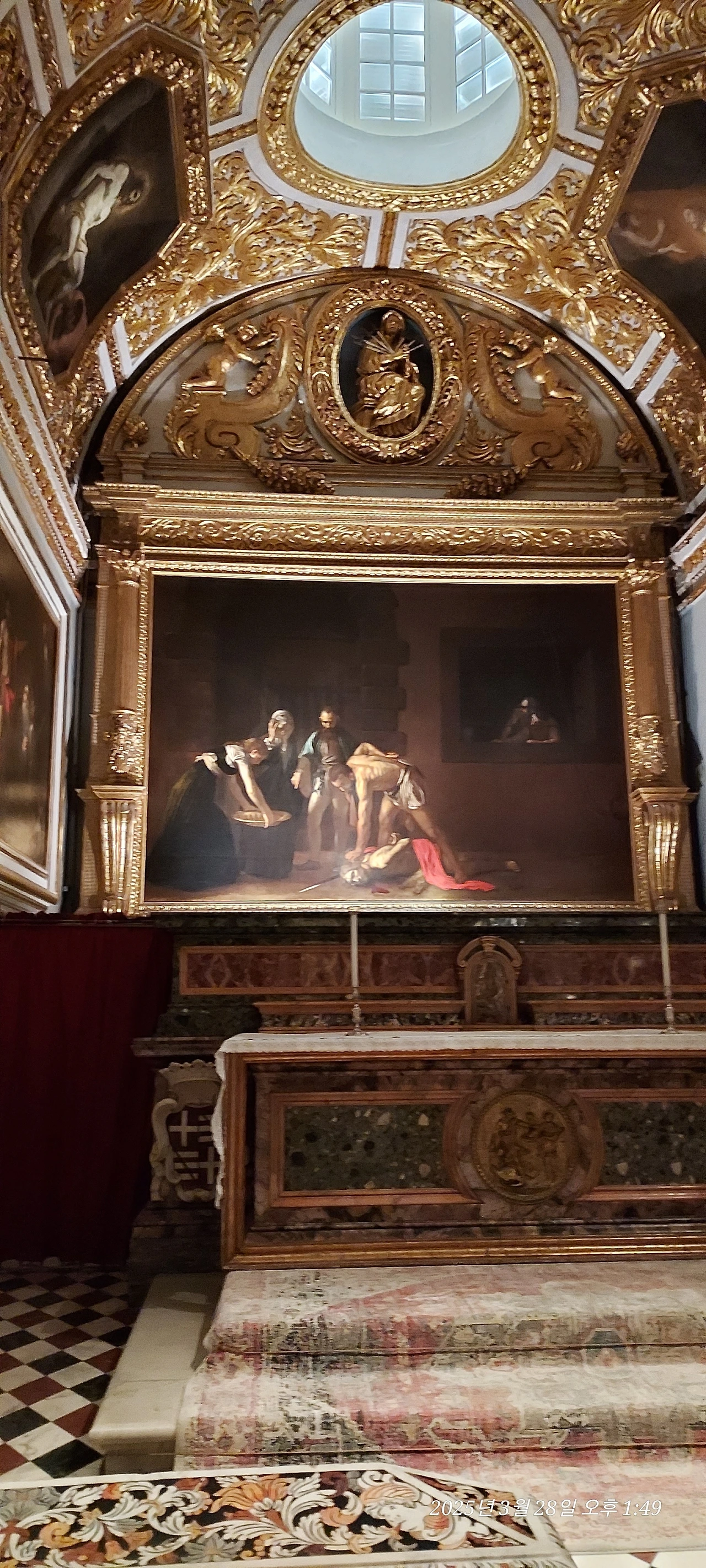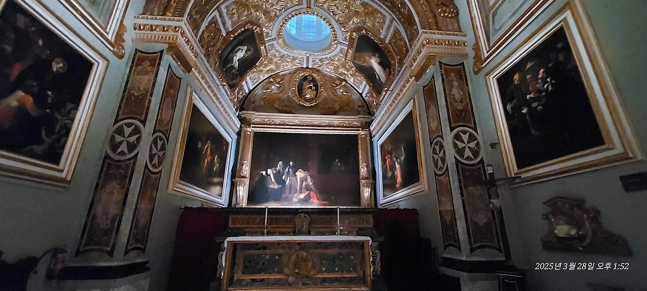 나는 성요한대성당에 들어서는 순간 성당 내부의 화려함에 혼을 빼앗기고 있었다. 크지 않은 성당 내부는 요한기사단에 참가했던 8개 국가가 개별적인 예배당을 차지하고 있고, 그 안에서 또 지극히 개별적인 공간을 확보하여 미사가 진행되기도 했다. 예배당이 끝나는 마지막 지점에 카라바조 그림을 만날 수 있는 특별한 공간이 마련되어 있다.