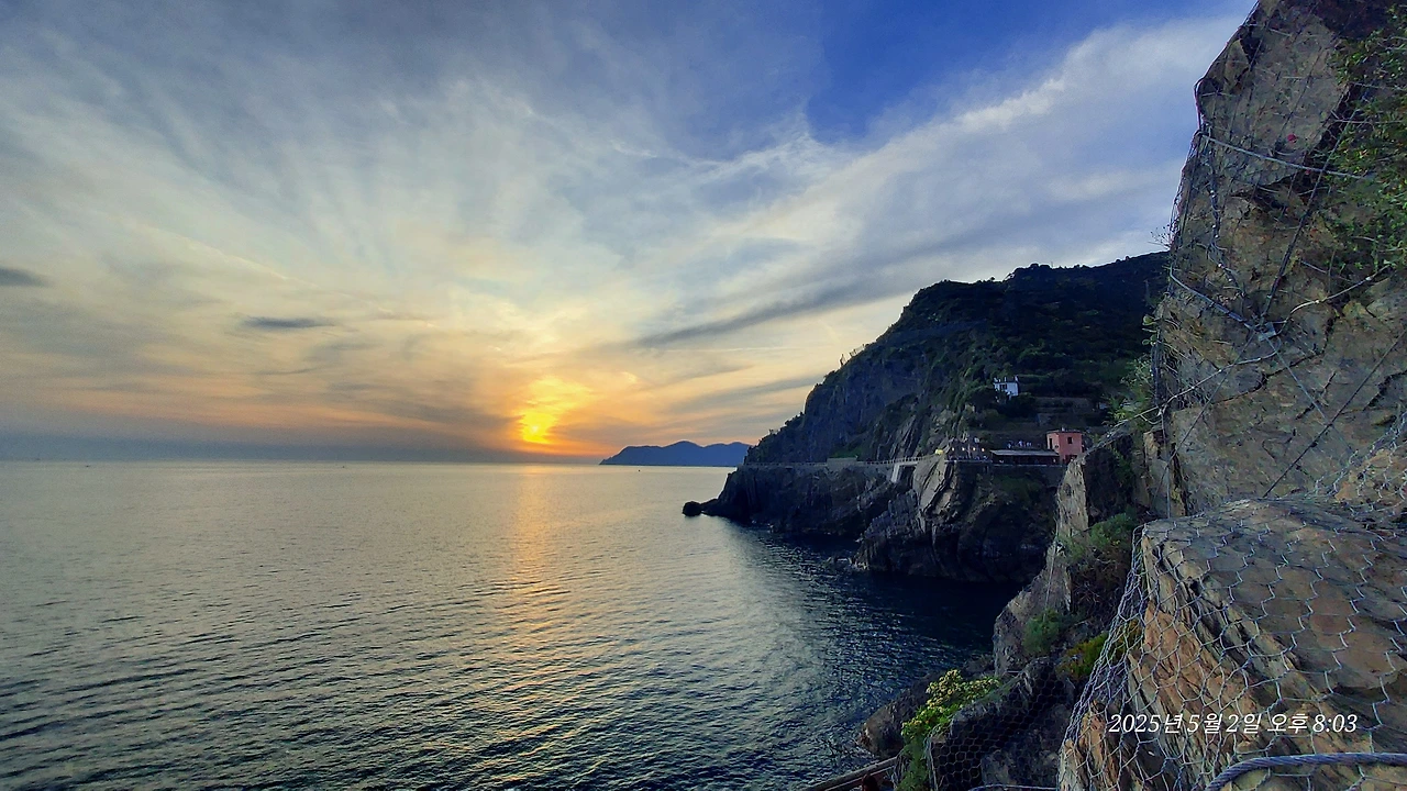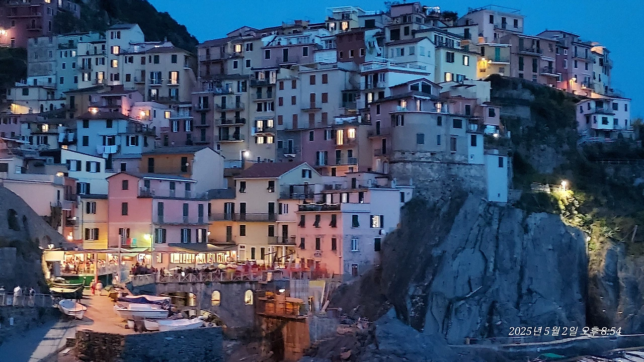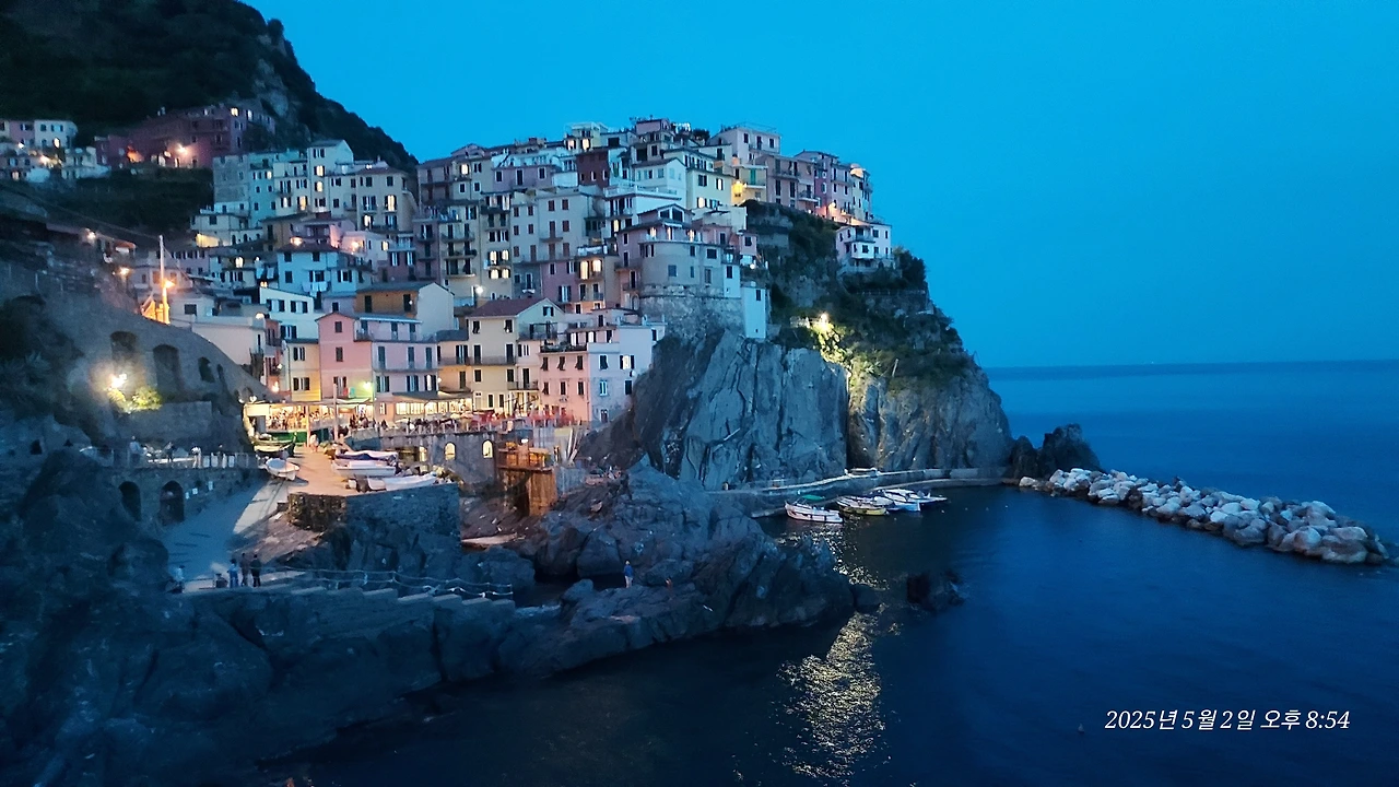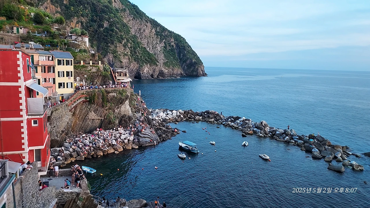 일몰과 야경이 예쁘다고 하여, 일찍 저녁을 해 먹고 다시 친퀘테레를 보러 산스페치아 중앙역으로 나간다. 금요일 저녁 이곳 거리는 흥청거린다. 오월의 첫 금요일은 주말을 낀 극성수기라서 사람도 많고 기차값부터 입장료까지 가격이 높이 책정되어 있다. 8시 일몰 시간에 맞춰 첫 번째 마을 리오마조레에 내렸다. 역에서 바로 돌산의 허리춤에 만들어진 길을 따라 돌아 걸어 들어가니 곳곳에 사람들이 모여 앉아, 노을 지는 바다를 감상하고 있다. 더 깊이 골목길을 따라가니 리오마조레 마을에서 바다로 이어지는 작은 항구가 나오고, 음악소리와 술잔 부딪히는 소리, 사랑을 나누는 소리로 작은 바닷가 마을은 소란스럽다. 바다로 이어지는 돌바위마다 사람들이 차지하고 앉아서, 멀리서 보면 마치 바위에 붙어있는 따개비 같다. 이렇게 좁은 곳에 많은 사람들이 모여있는 것이 나는 조금 불편해 보였다. 나는 갈 수 있는 곳까지 걸어가며 석양의 바다를 즐긴다. 우리는 다시 두 번째 마을로 이동한다. 마나 놀라까지 기차 이동 시간은 5분 내외. 시간이 늦어서인지 인적이 드물고, 마을에 조명이 들어오니, 사진에서 보던 그 예쁜 마을이 나타난다. 우리는 밤늦도록 마나 놀라를 즐기며, 다음 날, 즉 오늘의 전략을 짠다.