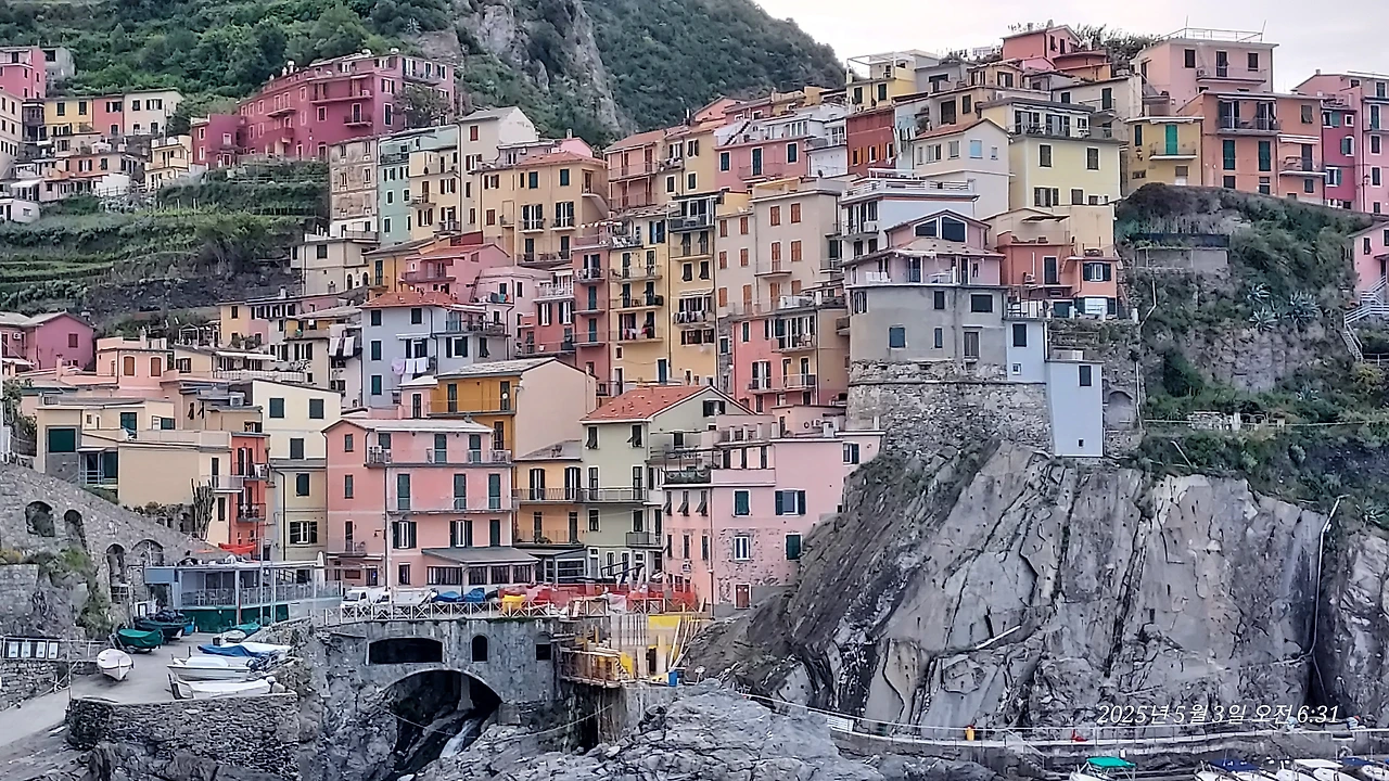 인파를 피하기 위해 더 일찍 움직여야 하고, 아침 식사를 도시락으로 준비하여 이곳 마나놀라에서 먹고, 다시 베르나차로 가서 마을 구경을 하기로 한다. 10분 전 10시에 귀가한다.