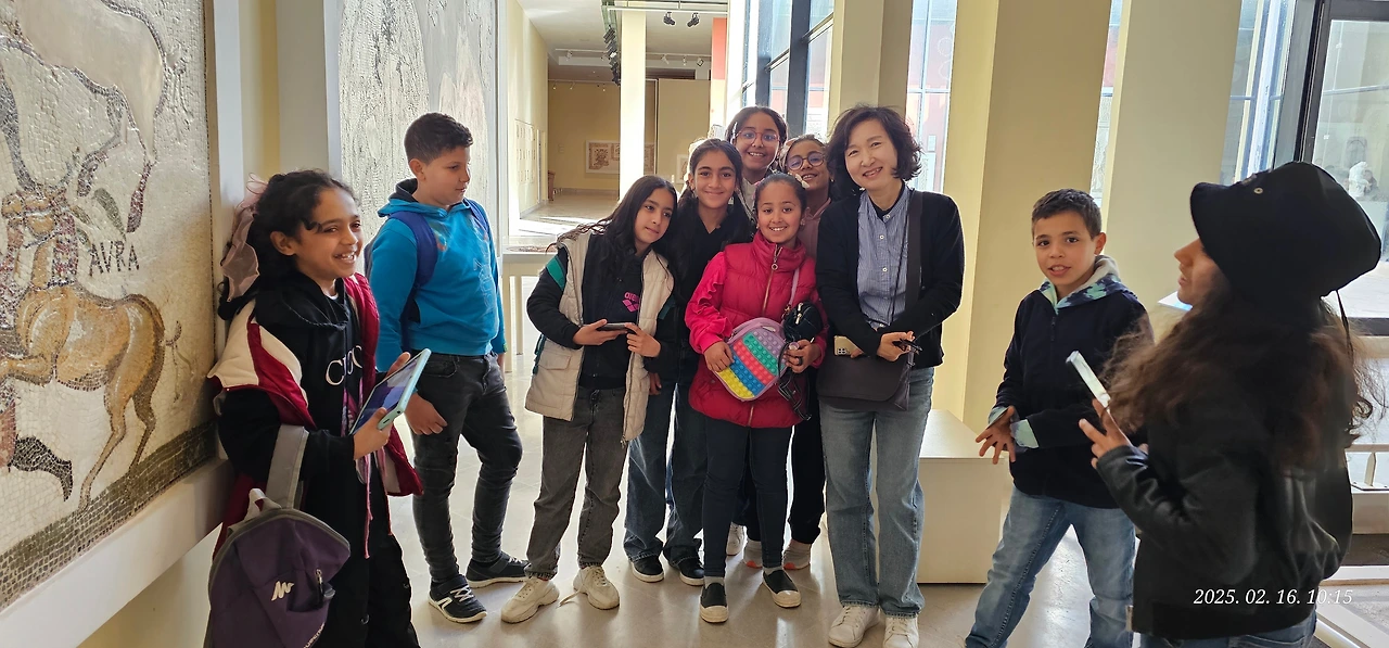 수스고고학박물관은 기원전 2~3세기 모자이크가 완벽한 헝태와 색을 유지한 채 보전되어 있어서 놀라웠어요. 일요일이라 학부모와 아이들이 함께 견학을 와 열심히 설명을 듣고 있었지요. 부모님들은 한국의 그들처럼 한눈팔지 말고 열심히 들으라고 코치를 하는데도 아이틀은 우리가 신기한지 몰려들어 사진 찍기를 청했어요. 어떤 의미로 받아들여야 할지 알수 없었어요. 완벽하게 남아있는 로마 유물 가운데 몇몇 페니키아인들의 유물이 있다고 하는데 언어가 통하지 않아 자세히 알수 없음이 안타까웠어요.
