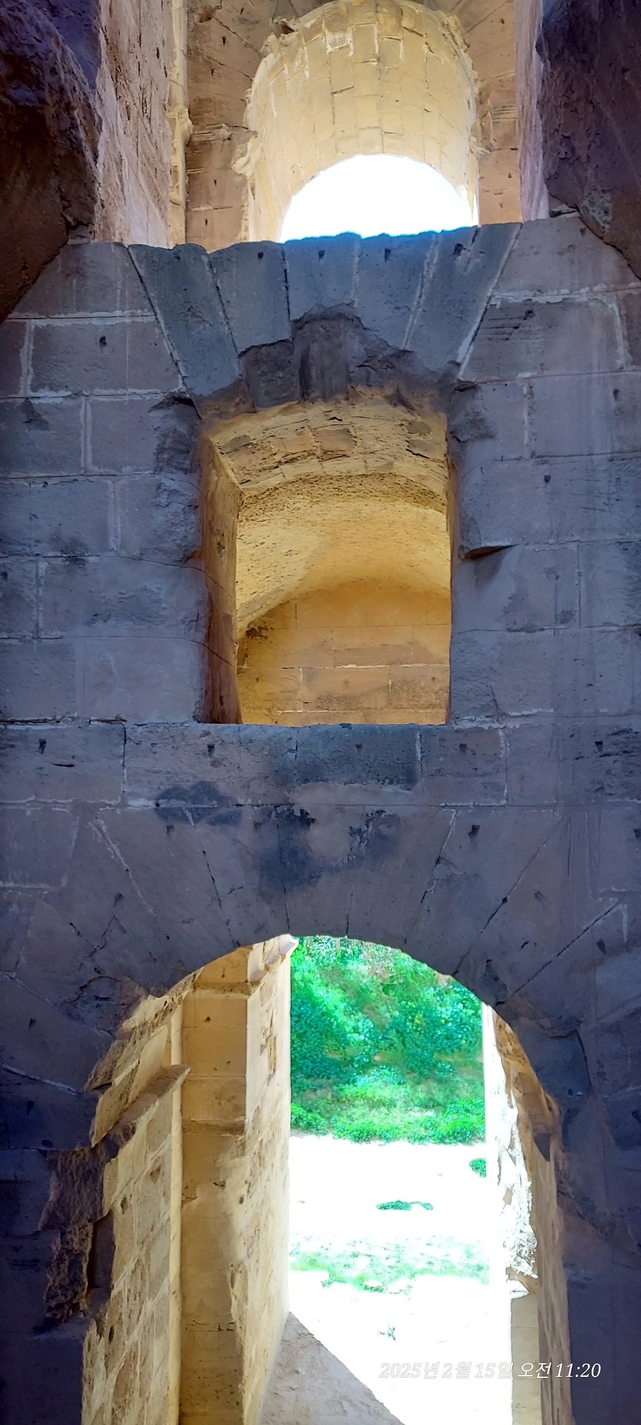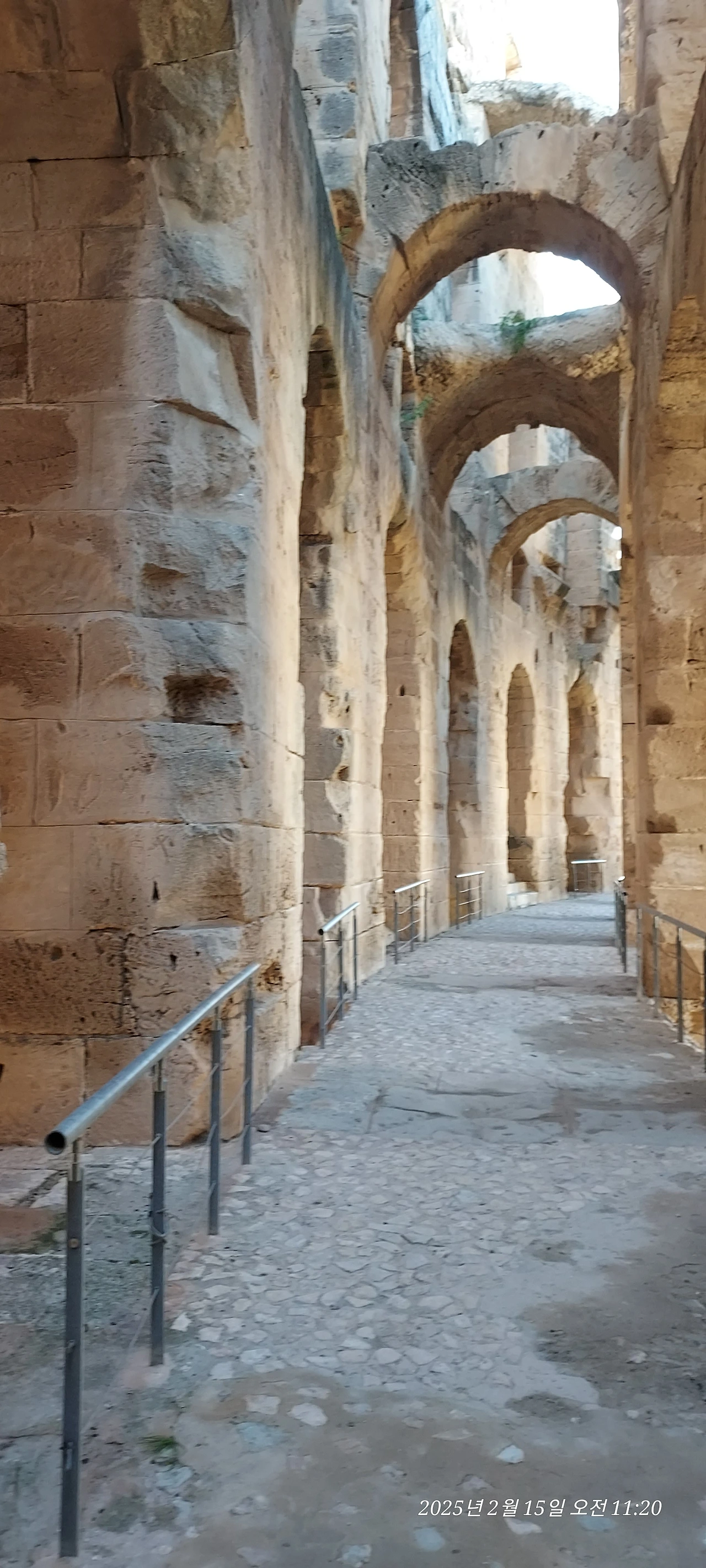 원형경기장 기둥 사이로 스며드는 자연빛이 그렇게 따뜻하고 고울 수가 없었어요. 공사를 위해 모아놓은 흙 색깔이 미색에서 노란빛이 조금 더 들어간 고운 콩가루 같은 빛이었거든요. 그런 흙과 대리석이 어우러져서 최상의 부드러움과 편안한 느낌을 자아내는 거겠지요?