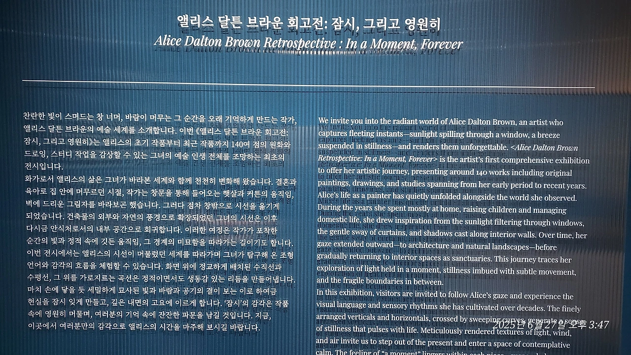 여기저기 미술관을 다녀본다. 오늘은 앨리스 달튼 브라운의 그림을 보러 여의도에 위치한 더현대갤러리를 찾는다.