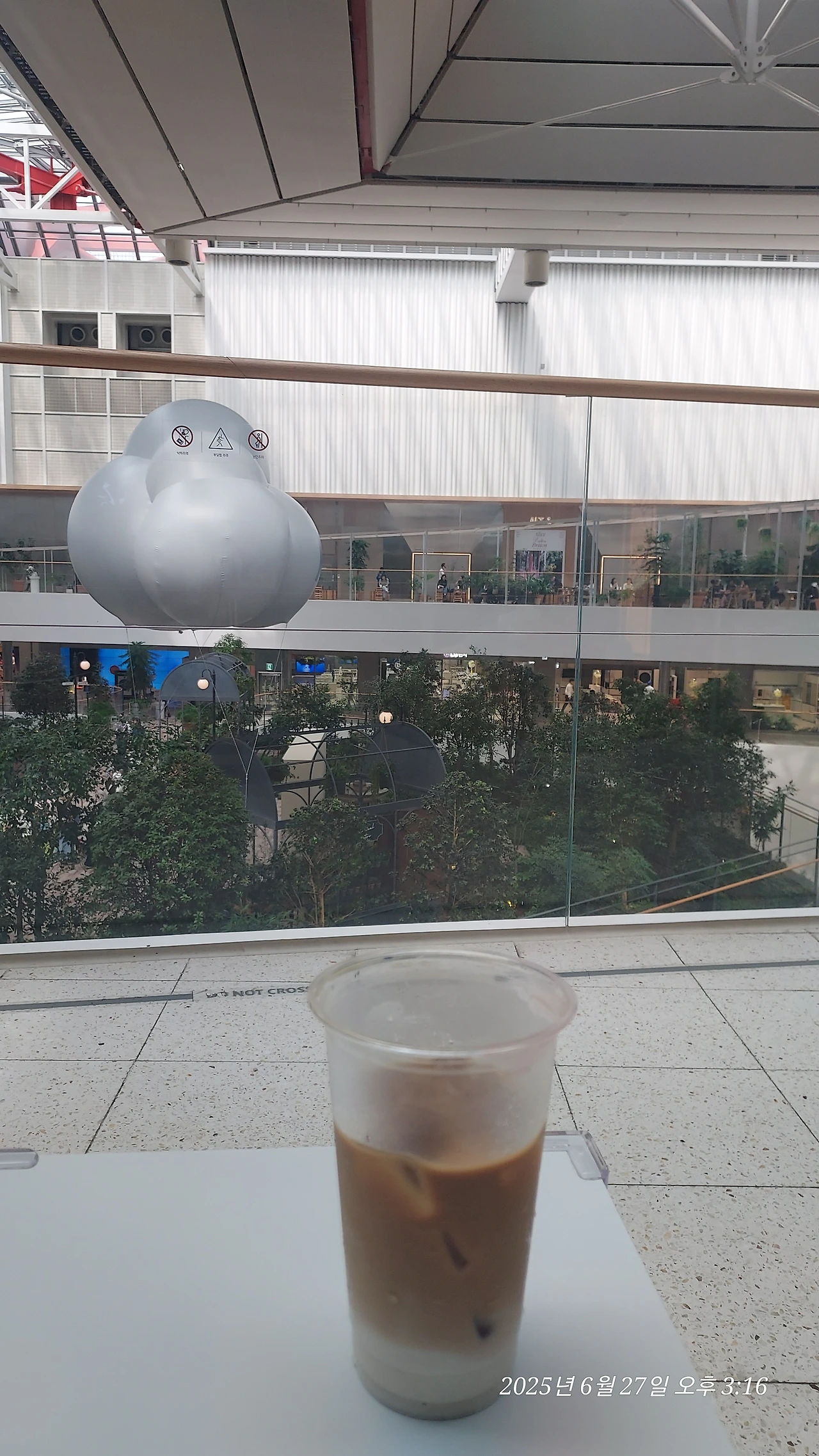 우선 스스로에게 하루에 한잔만 허용하는 오늘의 커피를 사서 자리를 잡는다. 건물은 6층 타원형 공간에 천정이 유리로 되어있어 마치 야외에 나와있는 느낌이다. 5층과 6층 사이의 가운데 공간은 트여 있어서 개방감은 크고, 그걸 확인시키려는 듯 커다란 풍선이 떠있다. 나무를 많이 배치해 놓아 도심 속에서 자연을 느끼게 하겠다는 설계자의 의도를 알겠다. 공간 활용의 새로운 시도처럼 보인다. 빈 공간이 절대로 낭비가 아니라는 걸 알게 하는 곳으로, 이곳에서라면 몇 시간이라도 머물 수 있겠다는 생각이 든다. 사람도 많지만 이곳저곳 공간 활용이 잘되어 있어서 어렵지 않게 마음에 드는 장소를 찾아 앉을 수 있었다.
