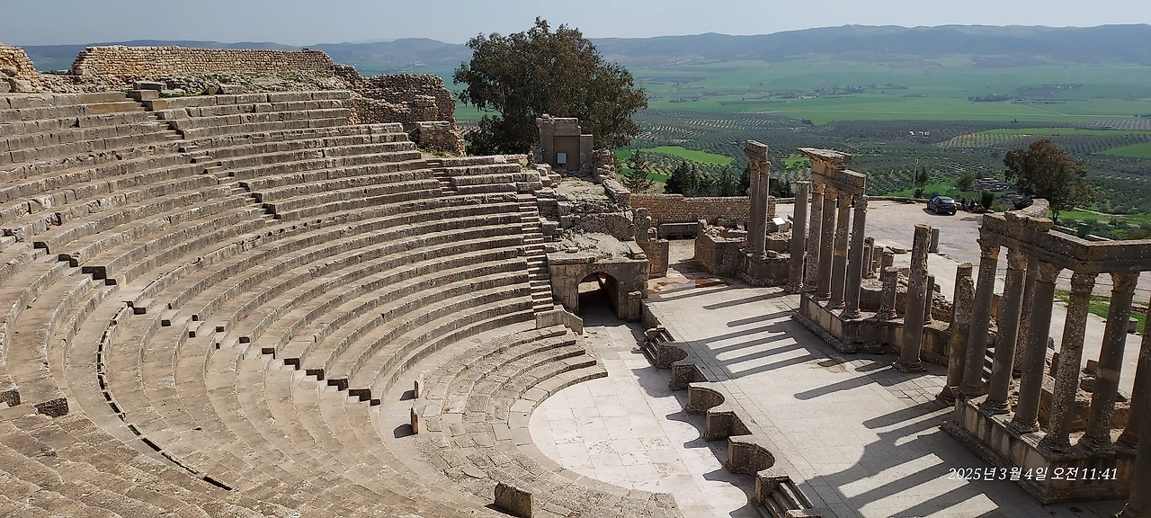 기원전부터 살았던 누미디아 왕조를 로마가 점령하여 로마 시민권까지 부여하며 부흥시킨 도시이다. 4세기까지 번성했던 도시인데, 비잔틴과 이슬람 문화가 들어오면서 쇠퇴했다고 한다. 내가 알고 있는 카이사르, 아우구스티누스와 같은 로마인들이 이곳 아프리카에 로마의 도시를 만들었을 정도로 중요한 가치를 지녔던 곳이다.