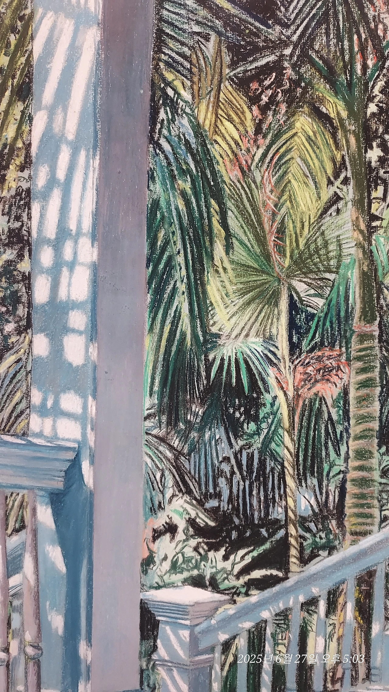 화구를 잔뜩 사서 화방에 맡겨두고, 카페에서 더위를 피하며.