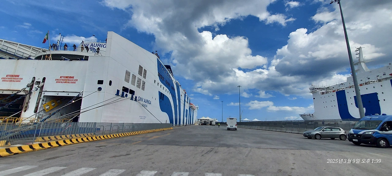 곧 시칠리아 팔레르모에 도착한다는 방송이 나오는지 다들 짐을 끌고 선실 밖으로 몰려나온다. 우리도 짐을 정리하여 좁은 선실 복도를 나와 중앙 로비로 이동한다. 그런데, 선실 복도 저만치서