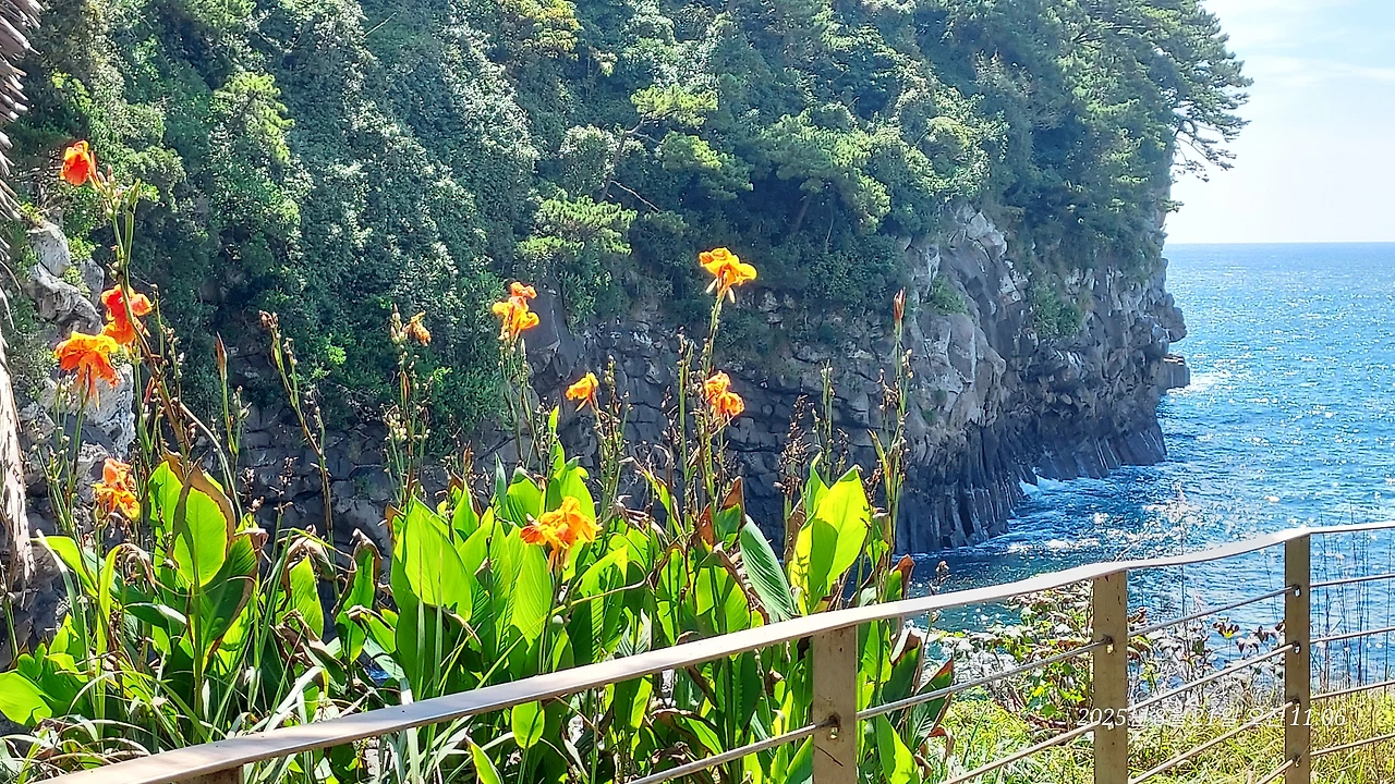 소라의 성을 지나 바다를 보면서 조금 걸어 나가면 곧 정방폭포 주차장이 나온다.