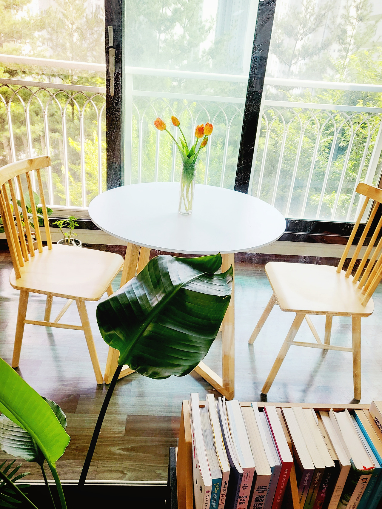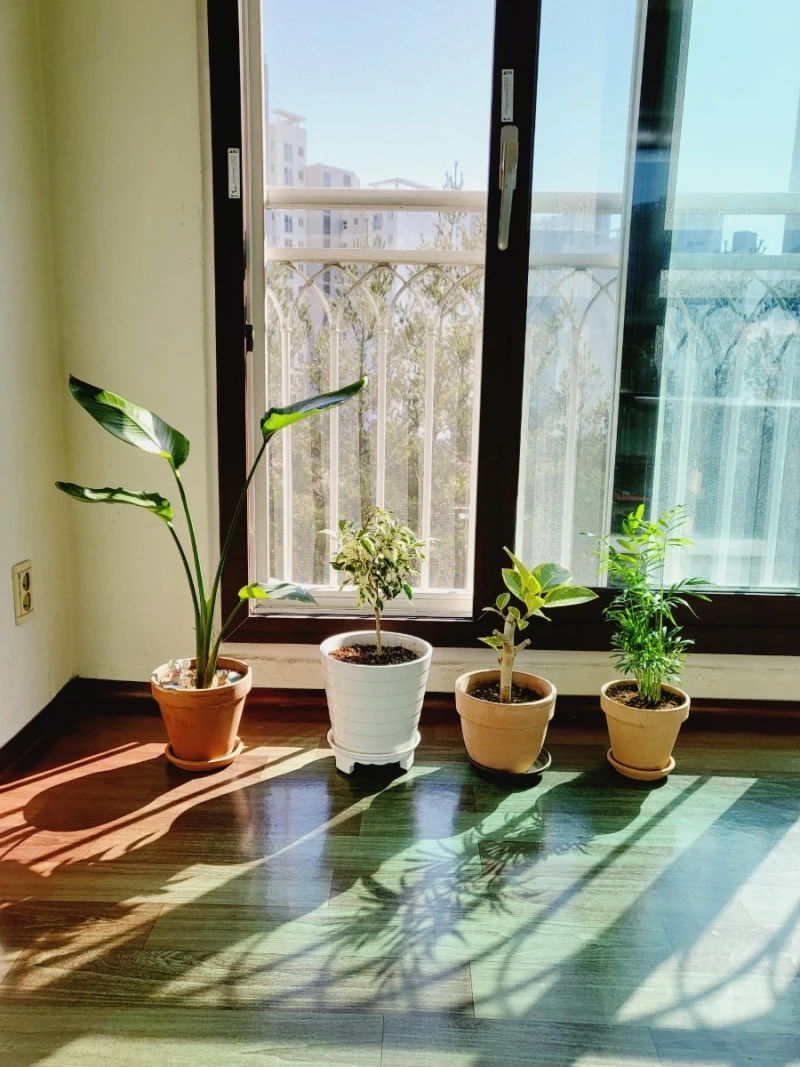 15년 된 구형 아파트의 장점은 베란다가 넓고 커다란 통창이 있어 식물들에게 바람과 햇빛을 충분히 선물할 수 있다는 점이다. 세탁 후 물기가 있는 옷감을 탁탁, 털어 베란다 건조대에서 햇볕에 바짝 말릴 수 있다는 것도 큰 장점이다.