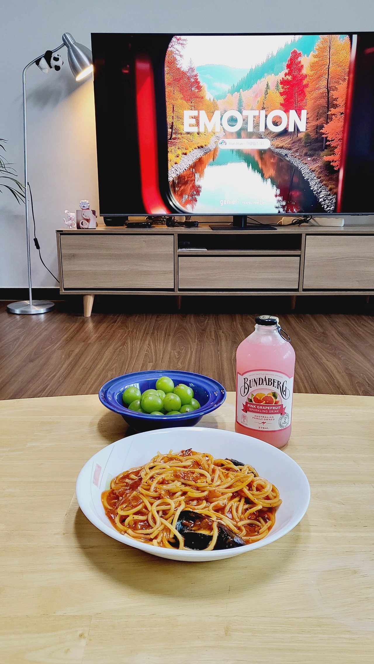 해물스파게티와 호주에서 날아온 분다버그 핑크자몽 음료수, 그리고 후식 샤인머스켓까지.. 보기만 해도 먹음직스럽다.