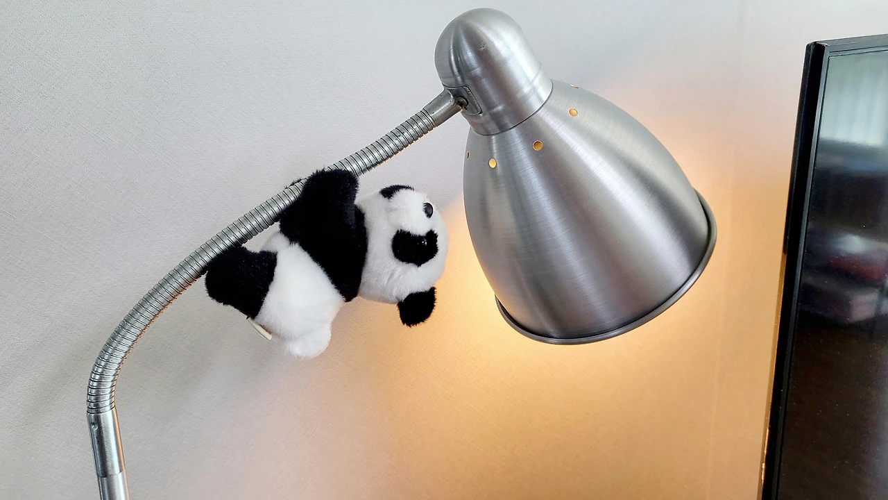 손발에 자석이 있는 판다가 조명에 찰싹 붙어있는 모습이 너무 귀엽다.