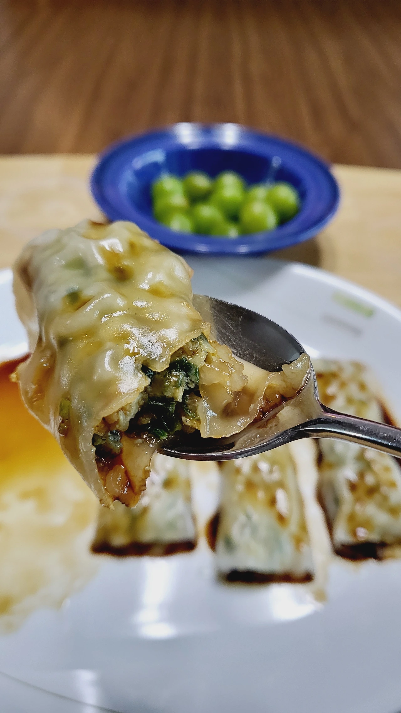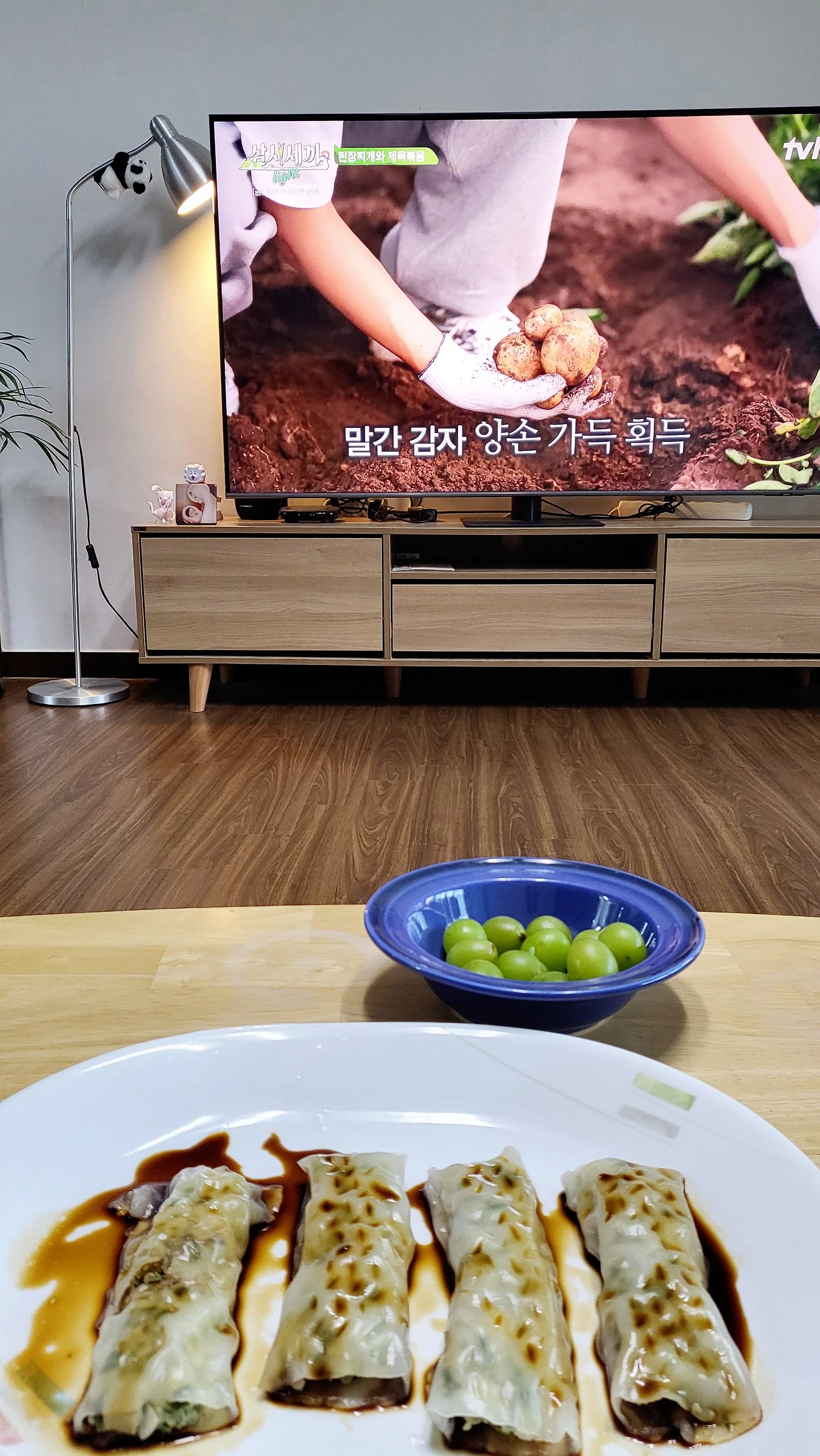 내가 좋아하는 삼시세끼 프로그램을 보면서 부추창펀 딤섬 네 개를 따끈하게 쪄먹었다.