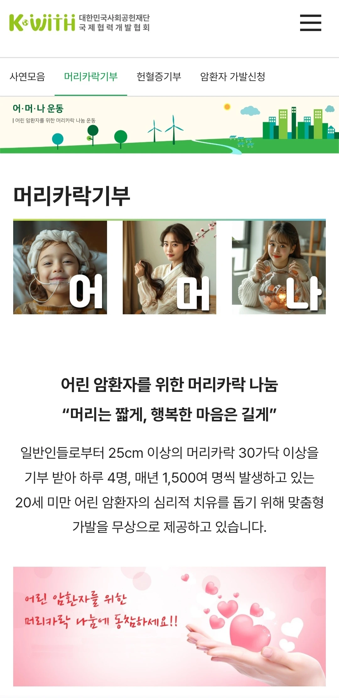 예전부터 나는 소아암 환자들에게 가발을 만들어주는 비영리단체에 머리카락을 기부하고 싶다는 생각을 하고 있었는데 지금이 적기라고 생각했다. 내 마음을 정리하면서 좋은 일도 할 겸, 미용실로 향했다.