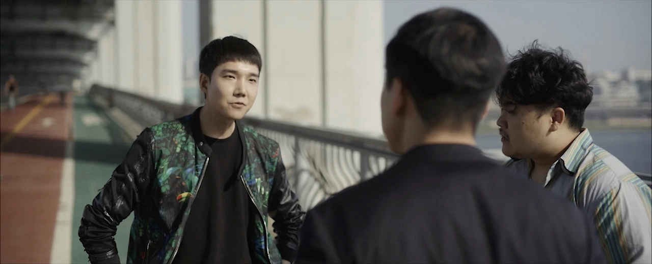 영화의 마지막, 태준과 영득은 출연영상이 없으면 우리가 직접 찍자는 동우의 제안을 받아들인다. 스마트폰 프레임 속 연기영상을 찍는 태준은, <출연영상>에서 자신이 했던 대사를 그대로 내뱉는다. 영화 엔딩 타이틀이 뜬 후, 세 인물을 연기한 현실의 세 배우는 연극의 무대 인사처럼 한 명씩 등장해 자신을 소개하기 시작한다. 영화와 현실의 경계가 무너지는 순간, 관객은 우리가 보고 있는 것이 이 세 배우의 실제 이야기이며, 이 작품 자체가 그들의 ‘출연영상’임을 깨닫게 된다.