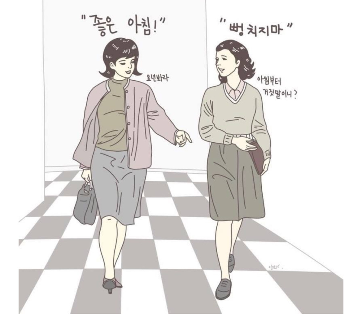”좋은 아침“이라고 인사하자 다른 직원이 웃으며 대답한다. 뭐라고 했을까?