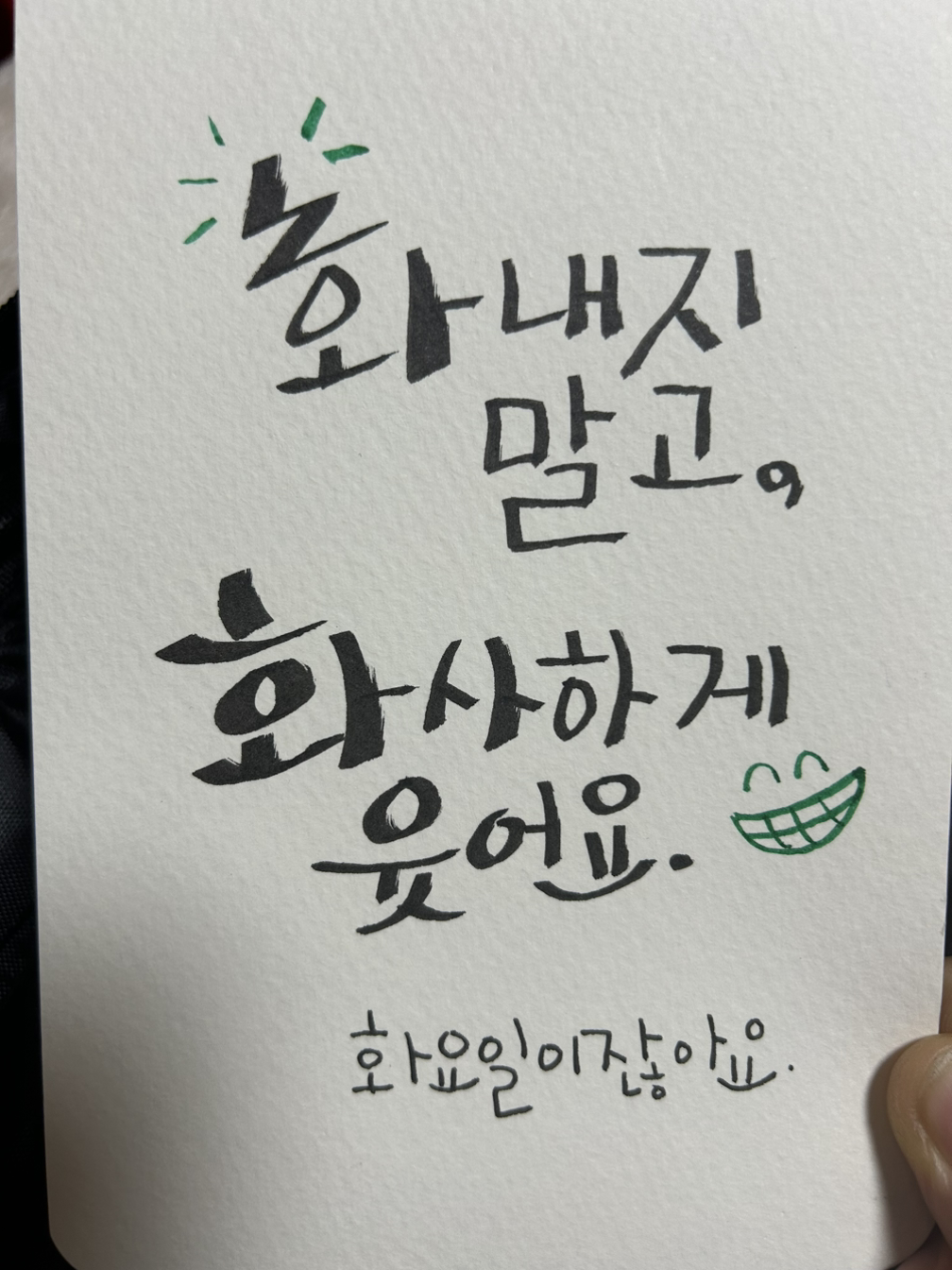 ‘화내지 말고, 화사하게 웃어요. 화요일이잖아요’