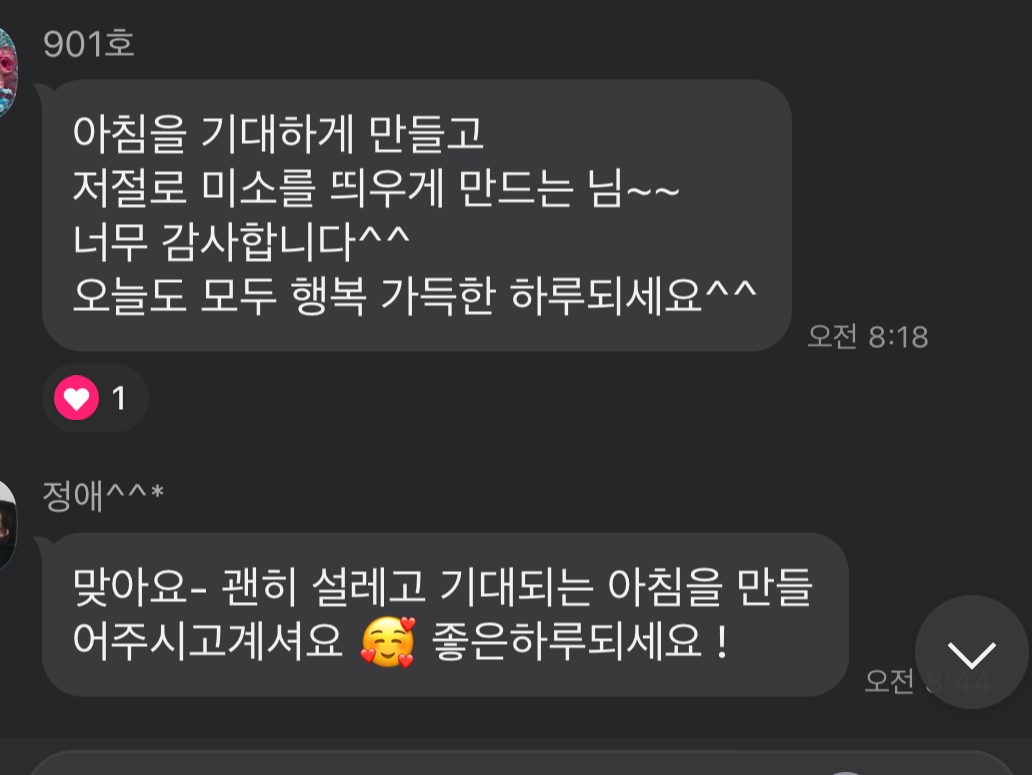 “넌 어쩜 그렇게 말을 이쁘게 하니? 네가 그렇게 얘기하니까 내가 되게 좋은 사람이 된 거 같아 내가 더 고맙다야. “
