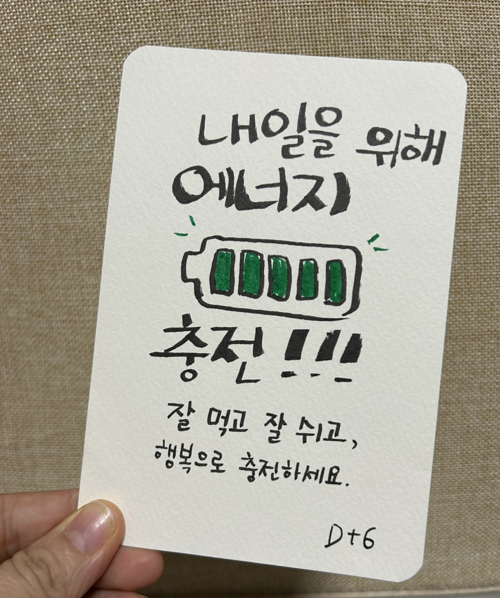 잘 먹고 잘 쉬고, 새로운 한 주를 시작할 에너지를 충전하길 바란다.