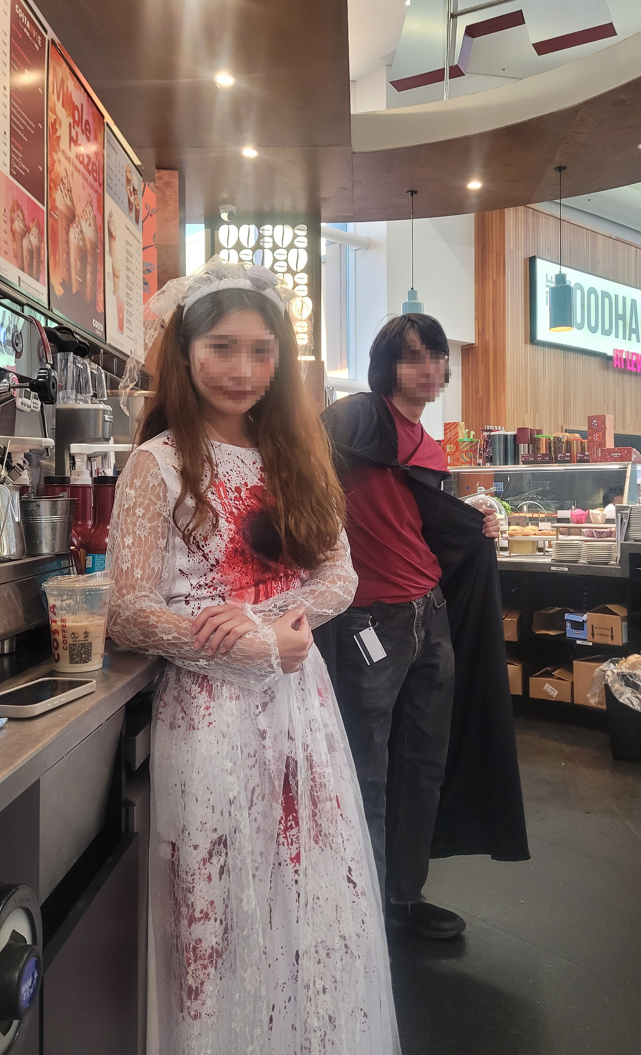 대만 친구는 피 묻은 드레스를 입고 메이크업까지 하며 당당히 걸어오고 있었다. 어학원에서 자기가 1등 먹었다고 자랑하기도 했는데 그녀의 자신감이 대단하다.